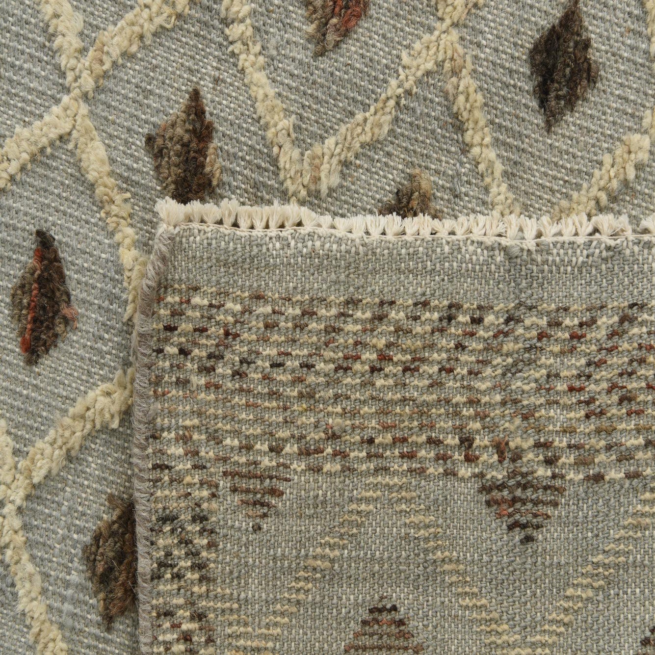 Primary color is Light Gray. Colors in this rug include: Light Gray, Brown, Ivory.