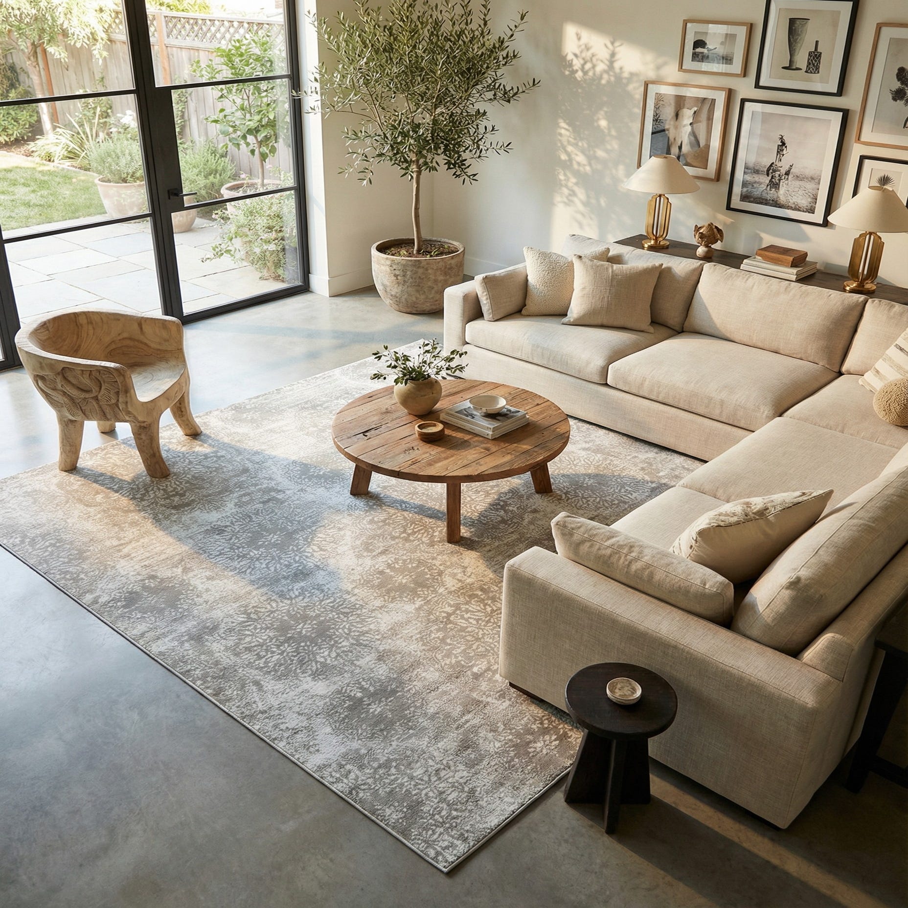 Primary color is Light Gray. Colors in this rug include: Light Gray, Ivory.