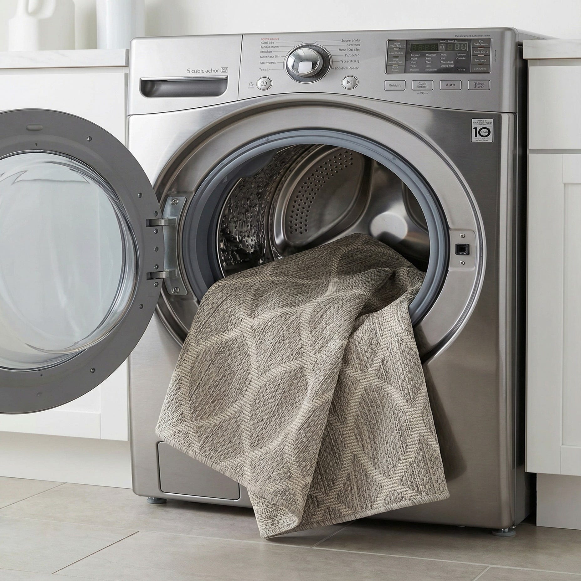This pet-friendly rug integrates easily into a range of interior scenarios, including but not limited to, modern minimalist, Scandinavian, or coastal-themed settings. The crisp design and neutral hues work well with natural wood elements, sleek furniture, and metallic finishes. Given its construction and size, this rug is an excellent choice for entryways, kitchens, or as a functional accent in a balcony setup.