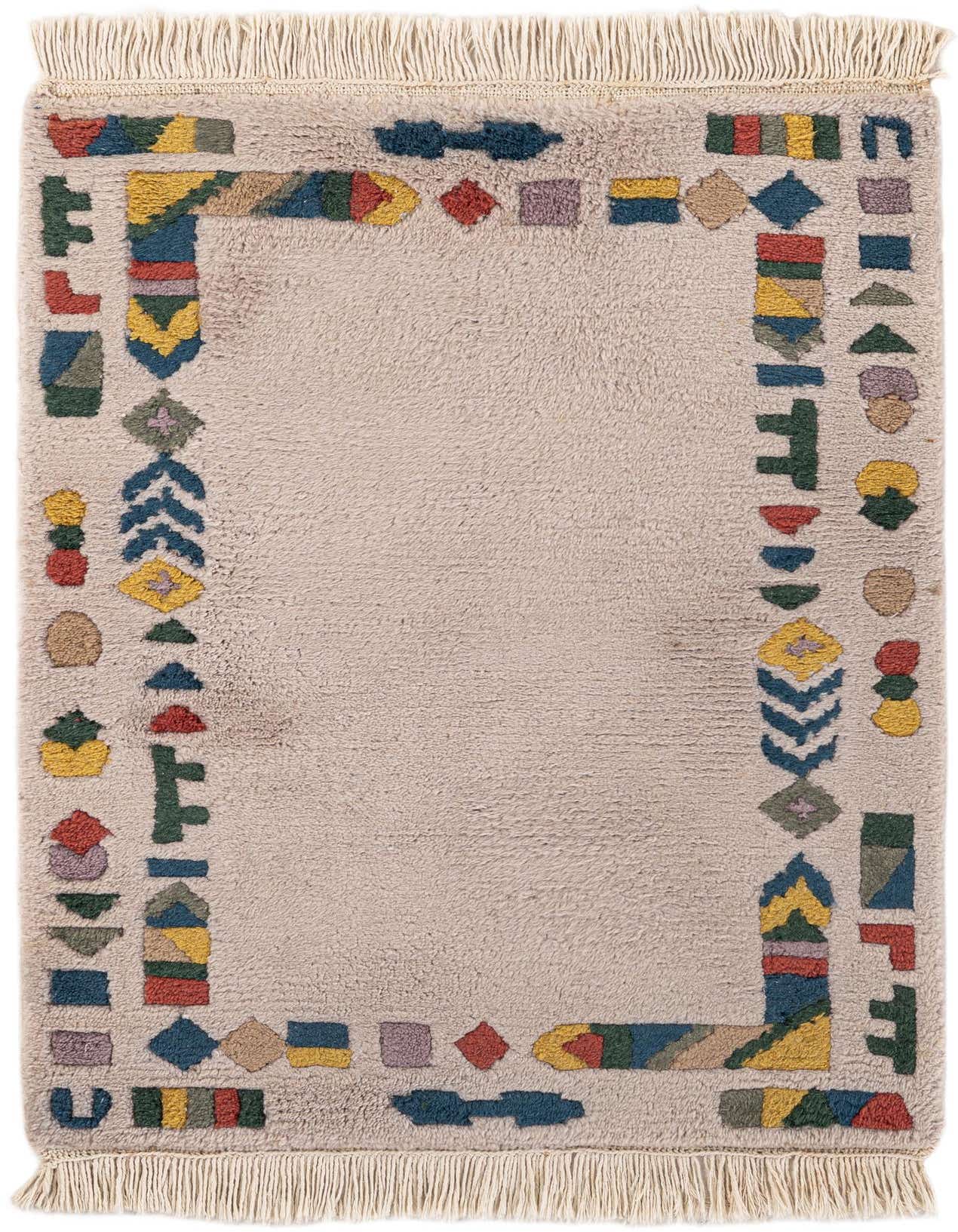 Primary color is Light Gray. Colors in this rug include: Light Gray, Blue, Green, Yellow, Gray, Red.