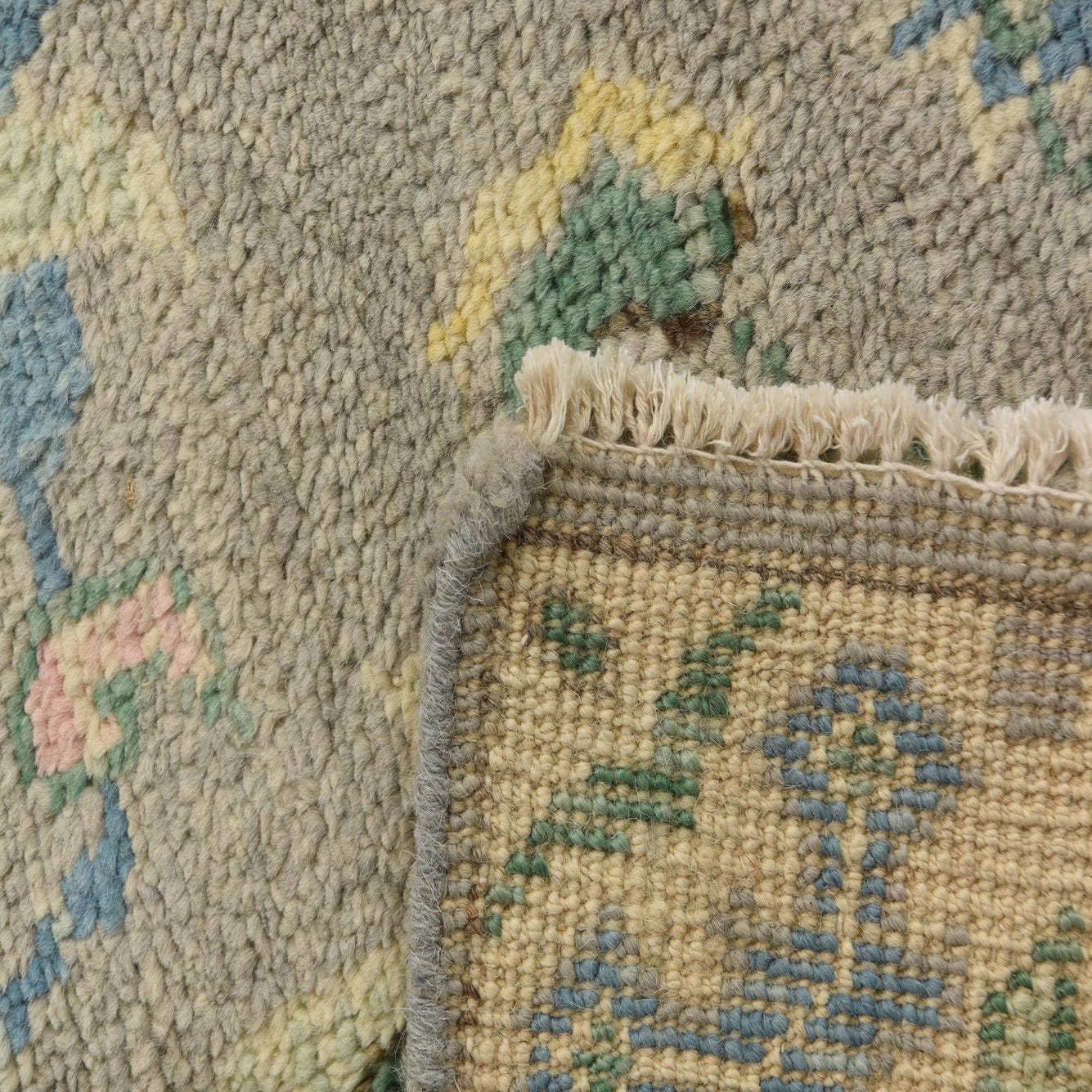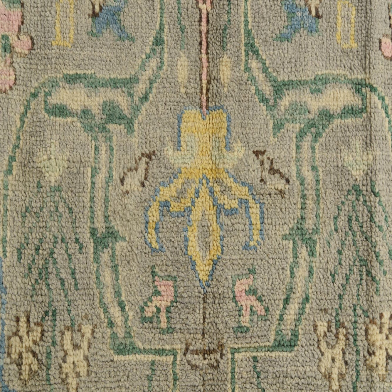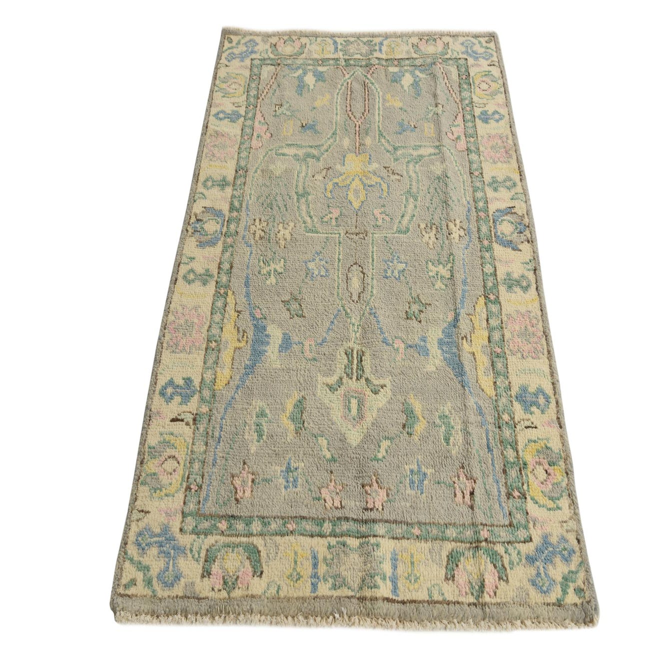 The Darya Collection rug is a hand-knotted piece, meticulously crafted from 100% wool, offering a durable and comfortable texture underfoot. Measuring 3 feet by 5 feet, this rug features a light gray background that presents a canvas for a delicate yet vibrant display of colors including green, light green, yellow, and pink. The pattern is a harmonious blend of traditional motifs with symmetrical designs that convey a sense of balance and elegance.