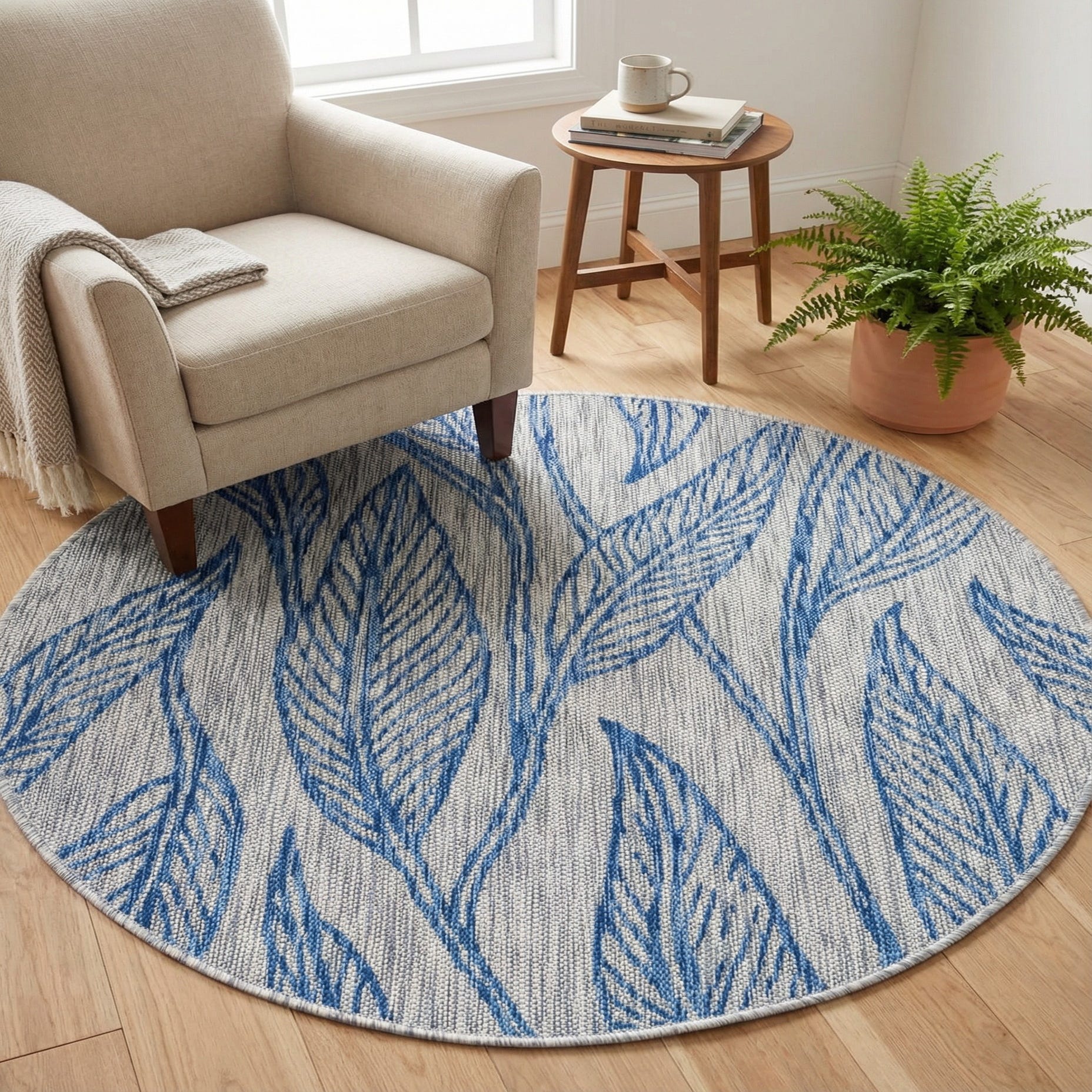 4' x 4' Washable Botanical Indoor / Outdoor Round Rug