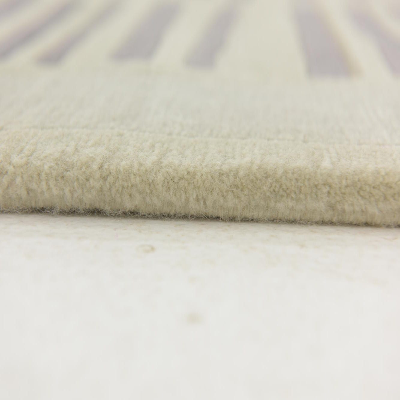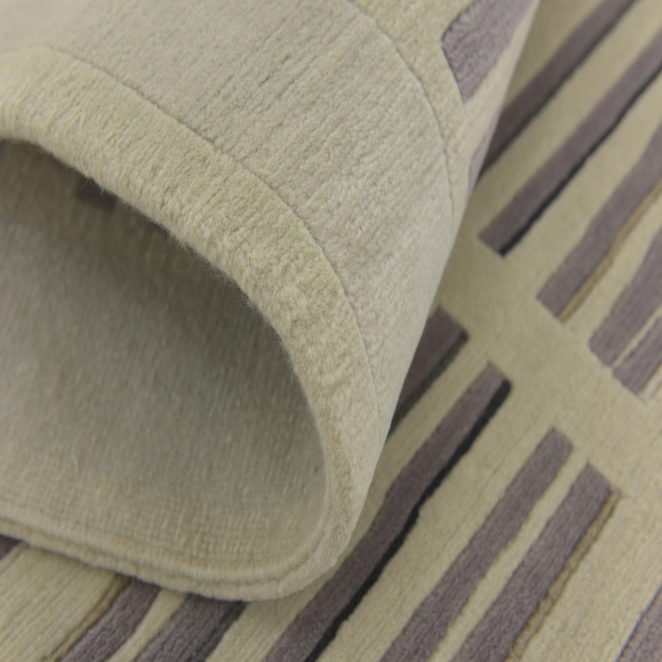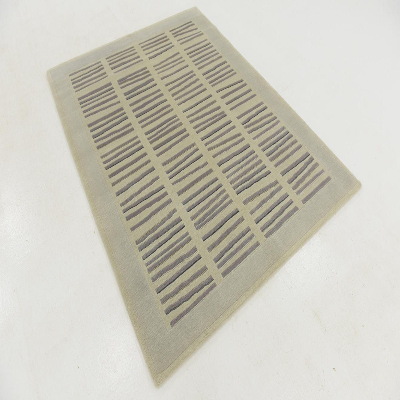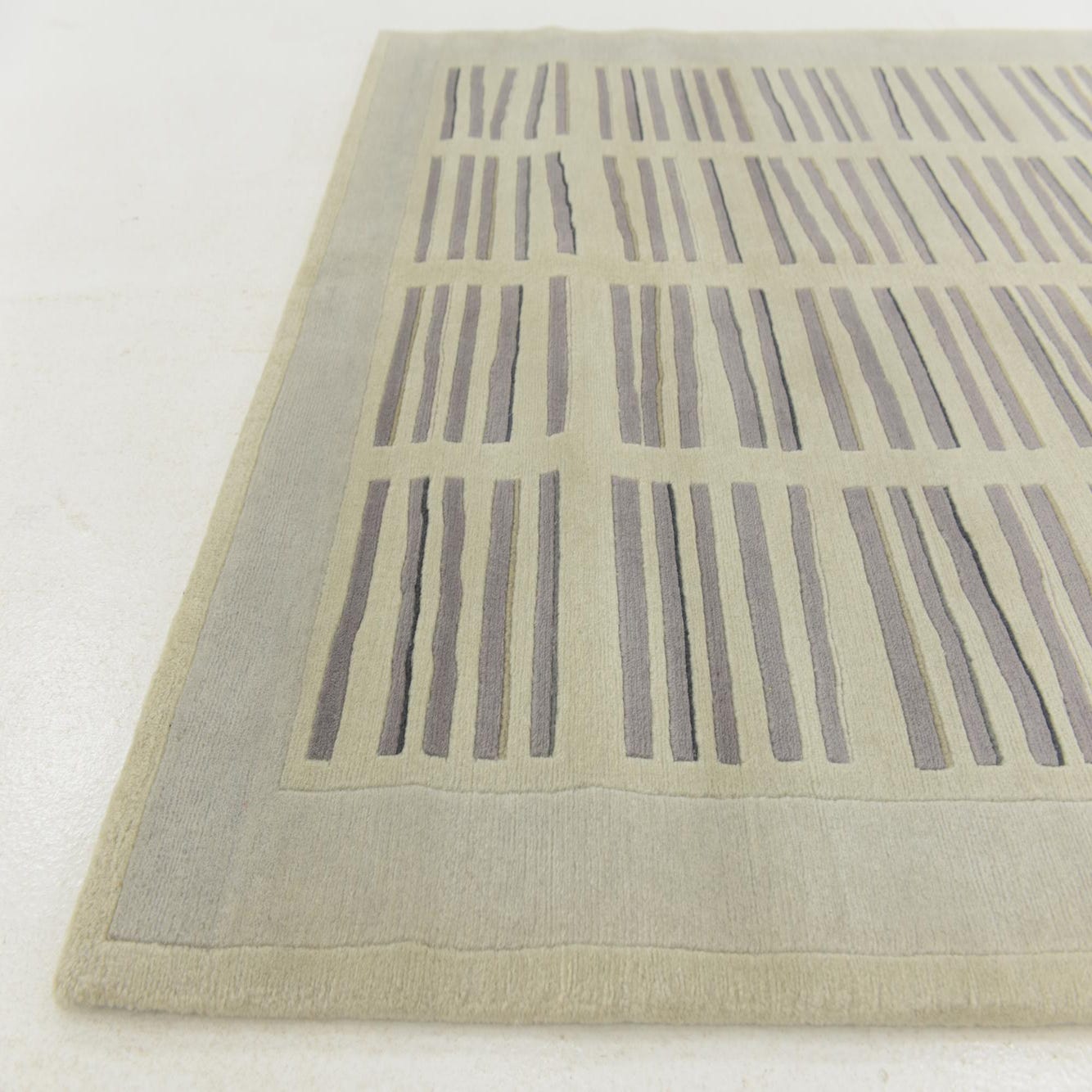 A 4x6 rectangular Nepal rug with a modern stripe pattern in varying shades of gray and silver on a light background, with a solid border.