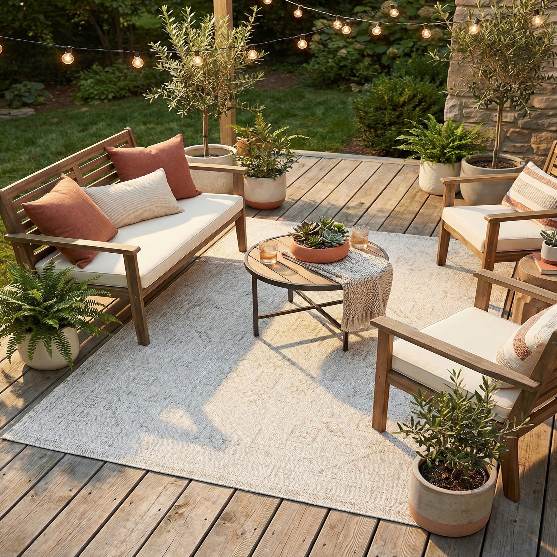 Given its neutral color scheme and versatile design, this rug can be placed in multiple settings, such as under a patio dining set, anchoring a sitting area on a deck, or in a sunroom. It can equally serve in transitional spaces, such as mudrooms or entryways. The understated pattern allows for coordination with a range of décor styles, from contemporary to rustic, making it a practical addition to any home.
