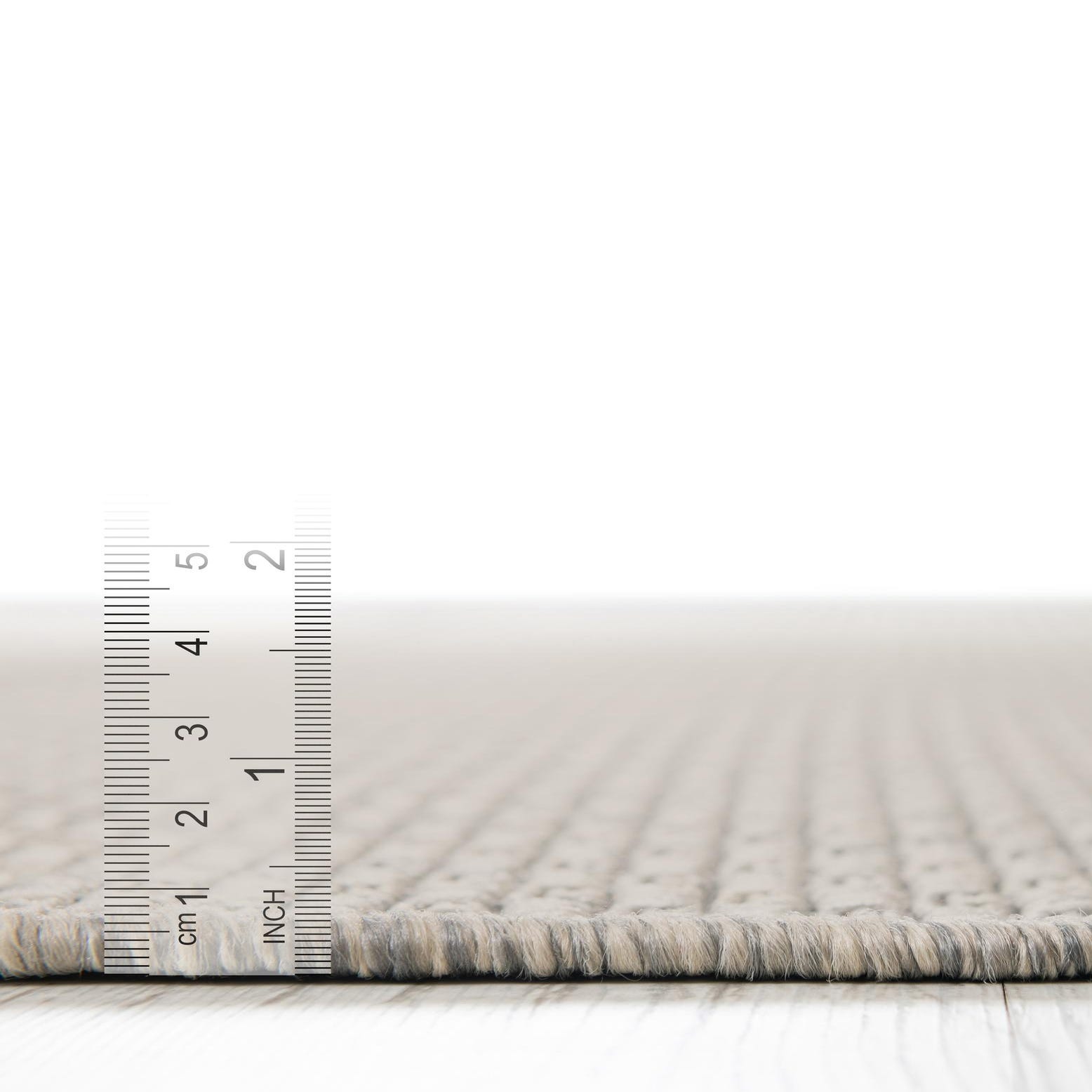 Machine made of 100% polypropylene, this piece is built for outdoor living and transitional interiors where low-maintenance texture is needed. It works well on a covered patio or screened porch, layered under a casual seating group, or inside a sunroom or entry to extend an outdoor aesthetic indoors. Pair it with woven furniture and weathered wood for a coastal vibe, or use it as a quiet grounding layer in minimalist and Scandinavian-inspired rooms.