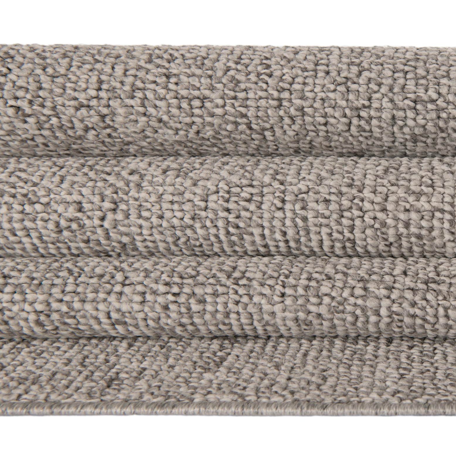 A soft, light gray field with a refined, low-profile texture gives this rug a clean, contemporary presence. Tightly woven polypropylene yarns create a subtle, pebbled surface that reads as uniform from a distance yet reveals gentle tonal variation up close. The flat, slightly looped construction feels firm underfoot while still offering a touch of cushioning, and the monochromatic light gray keeps the look understated and versatile.