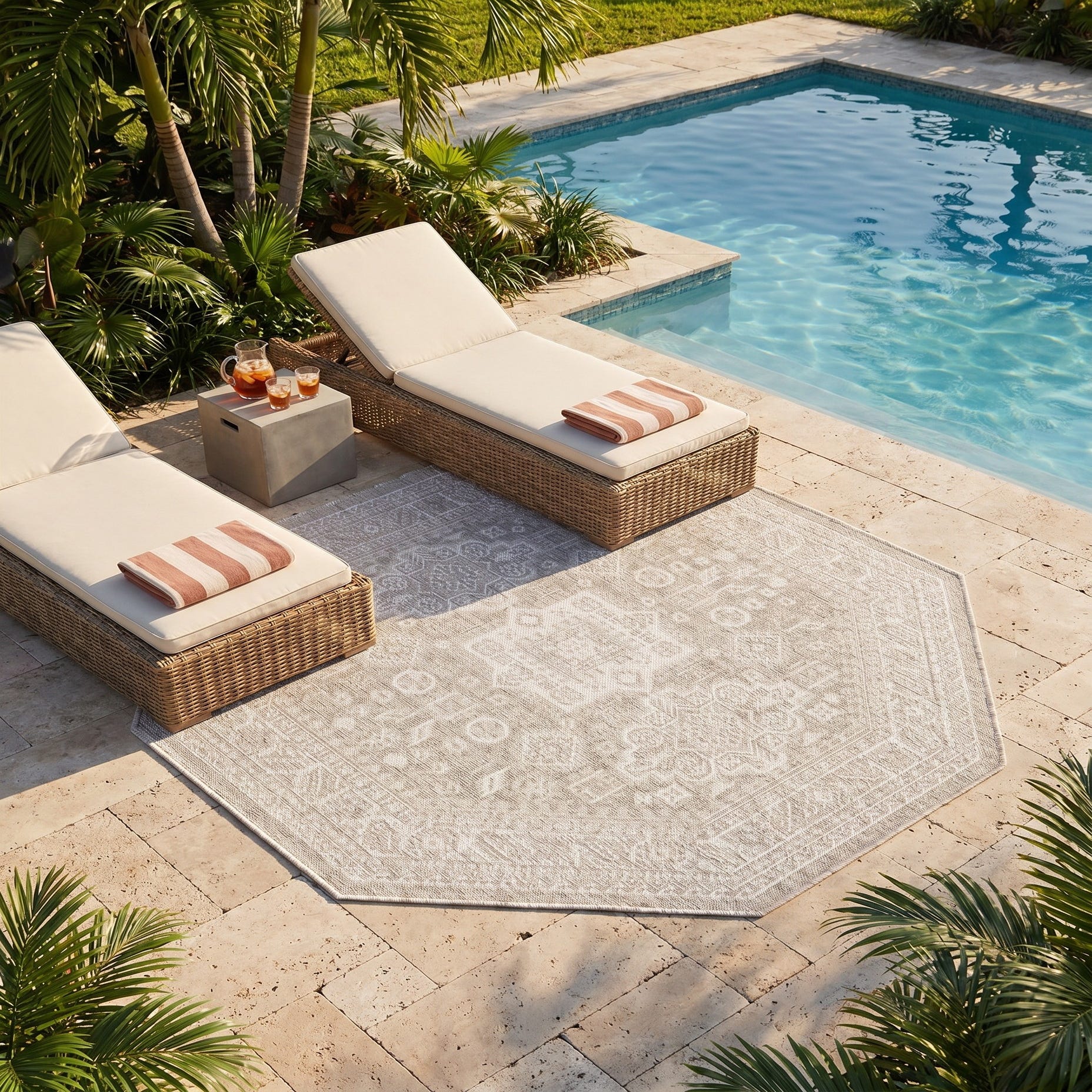 5' 3 x 5' 3 Easy-Clean Aztec Indoor / Outdoor Octagon Rug