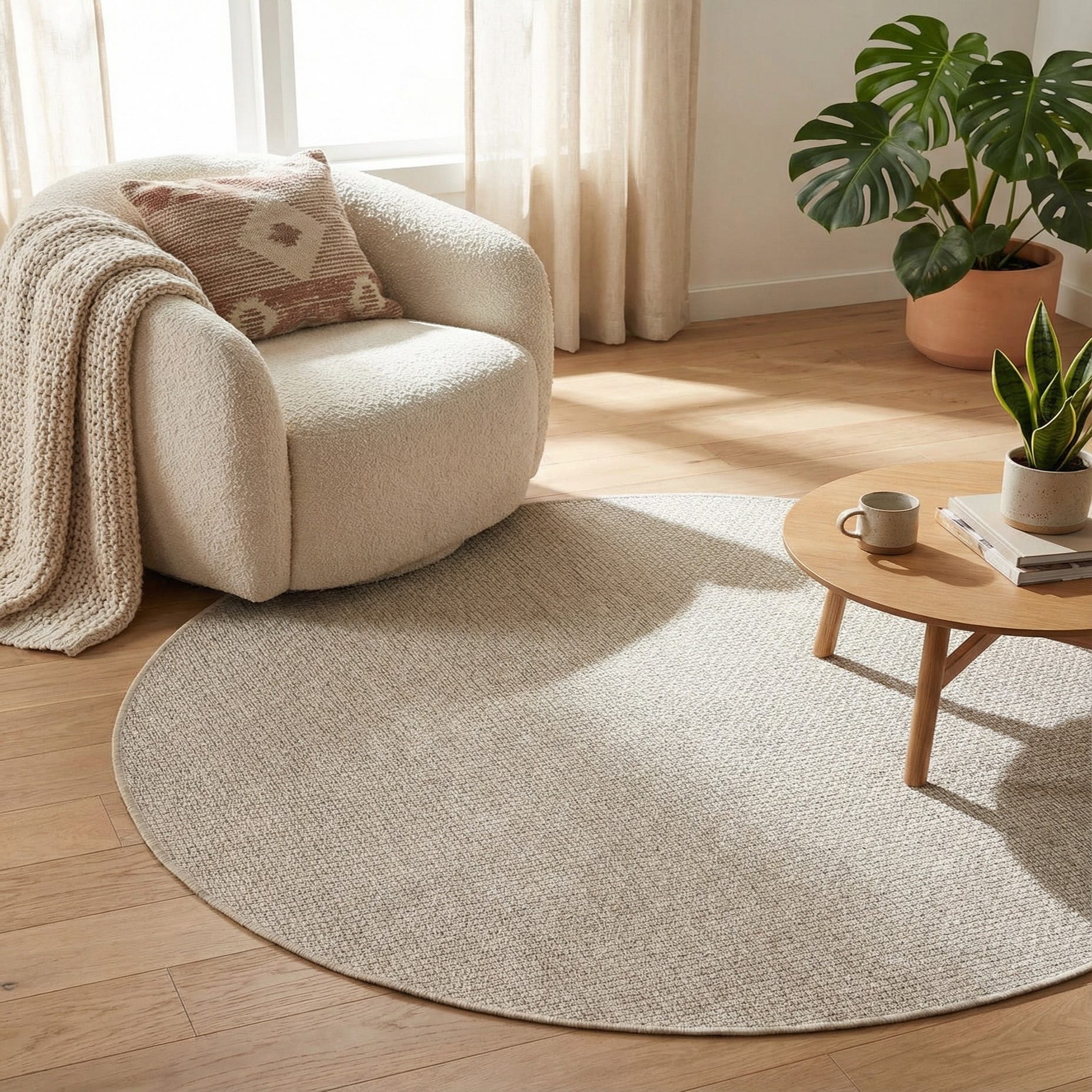 5' 3 x 5' 3 Washable Solid Indoor / Outdoor Round Rug