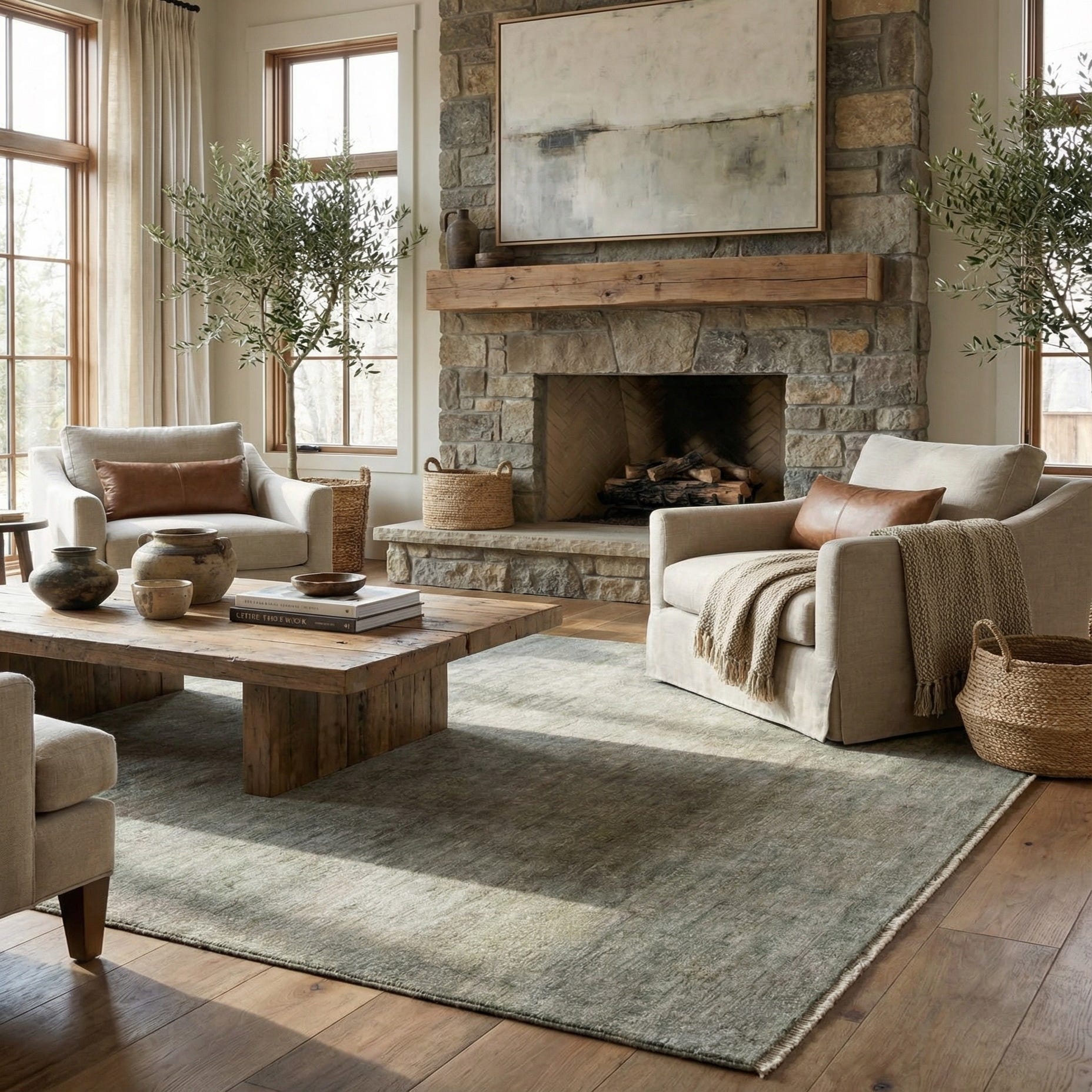 Ideal placements for this piece include living rooms that favor muted color palettes, bedrooms seeking a touch of warmth without overpowering the space, and office environments where subdued sophistication is desired. The rug's square shape offers versatility, fitting well in symmetric spaces or as a distinctive element within larger open-plan areas.