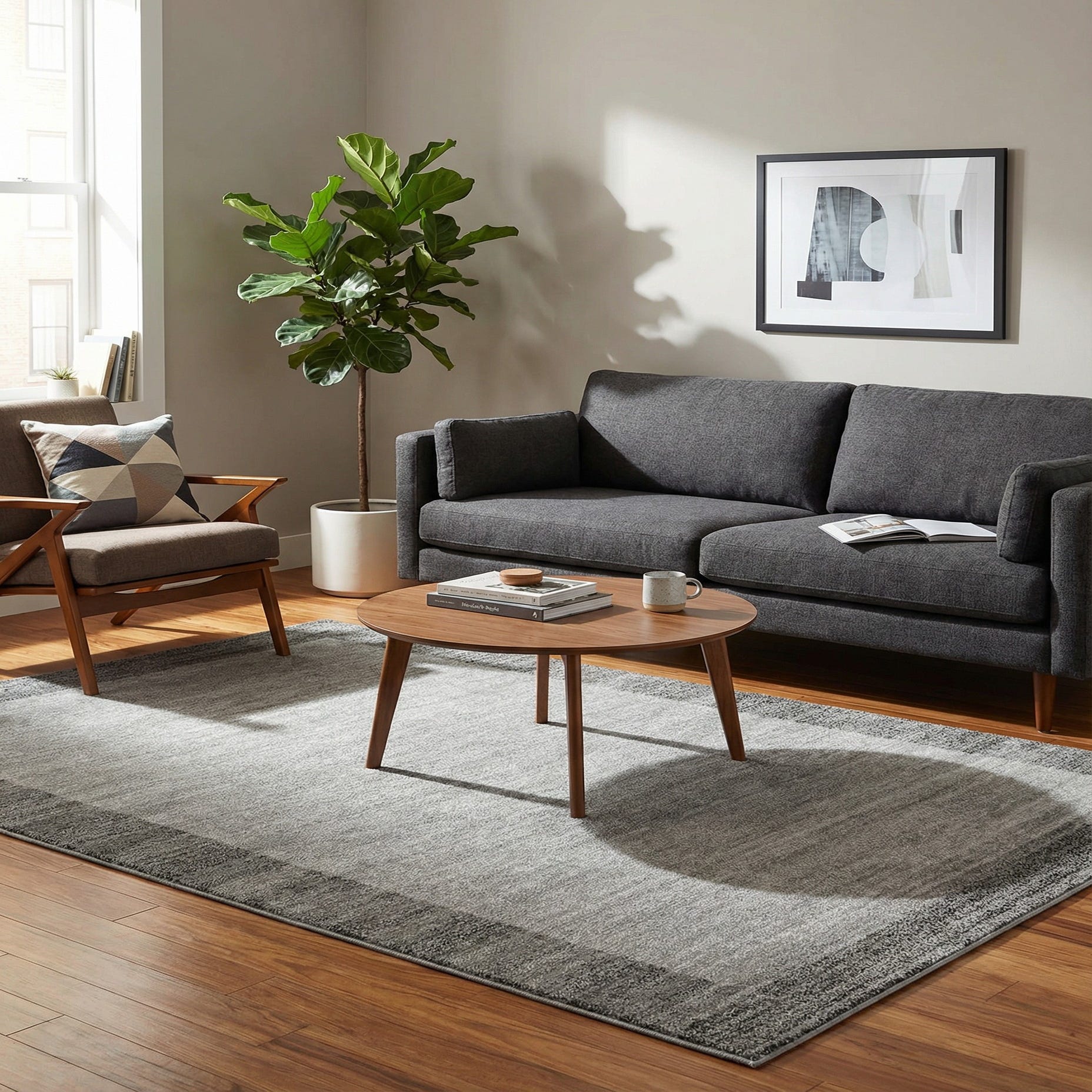 This neutral palette and restrained pattern make the rug versatile in a variety of interiors. Place it under a sofa and coffee table to anchor a modern living room, tuck it beneath the lower two-thirds of a bed to define a bedroom, or use it in a home office to ground a desk and chair. It pairs naturally with warm wood tones and linen upholstery for a Scandinavian look, or with charcoal accents and metal finishes in contemporary and transitional schemes.