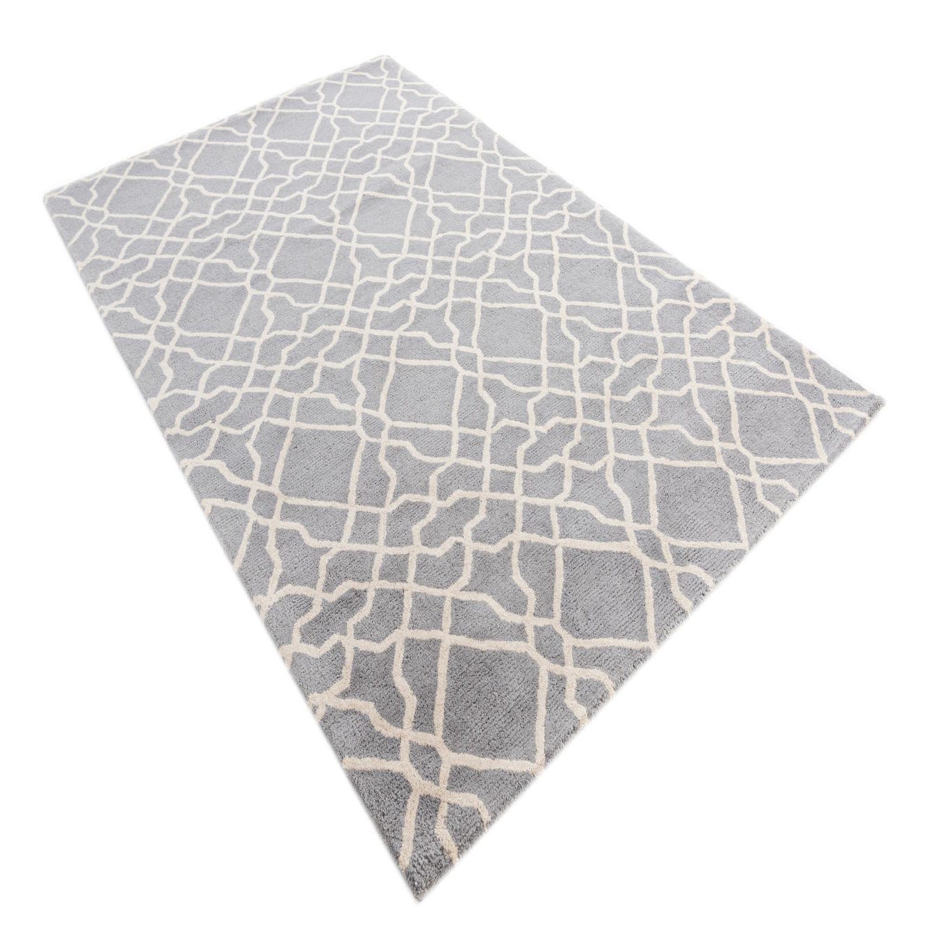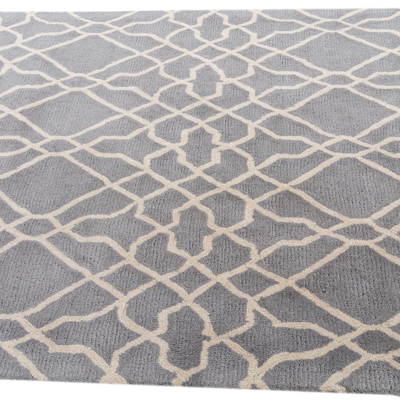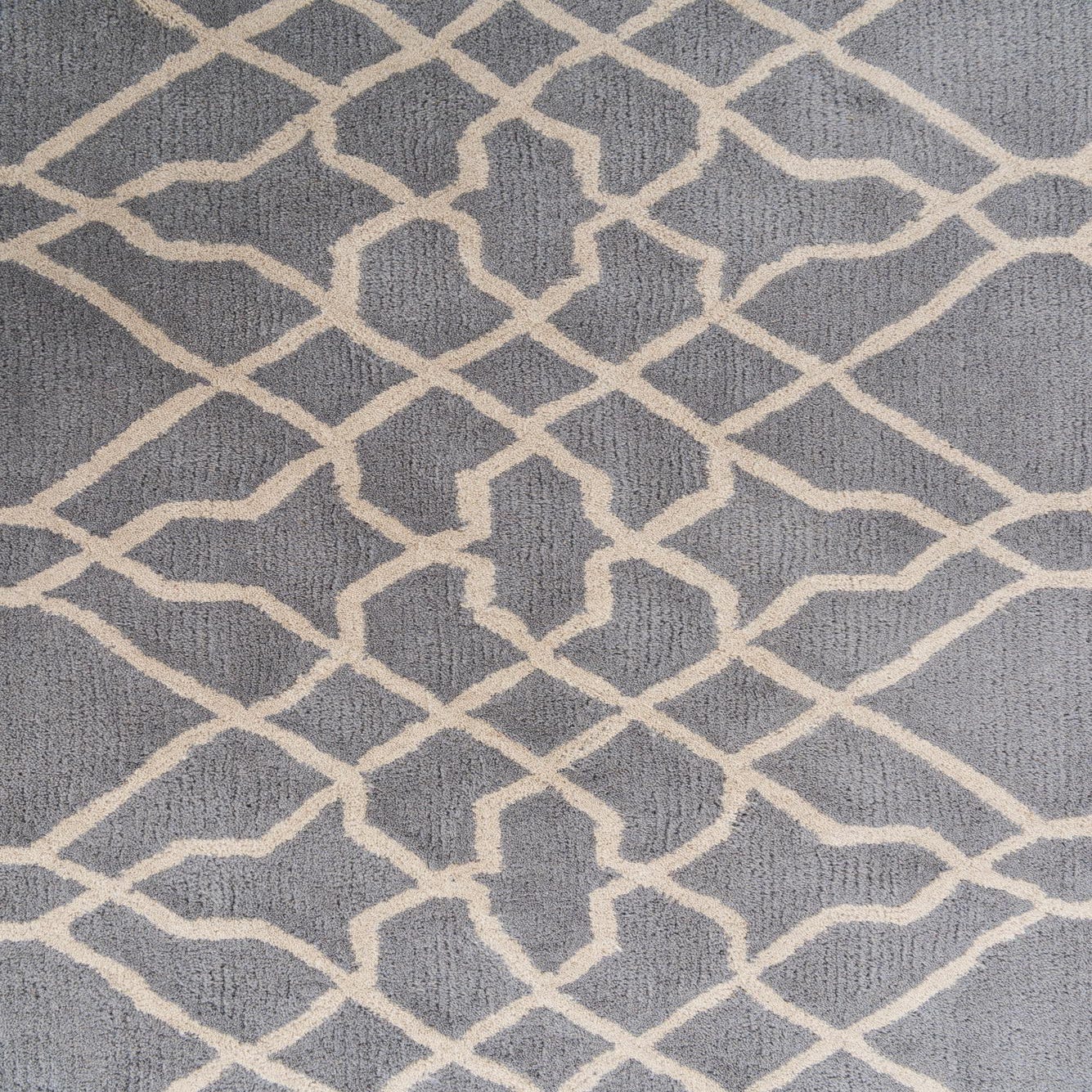 The Luna collection presents an elegant 5x8 hand-tufted rug crafted from a blend of wool and cotton, offering both durability and comfort underfoot. This piece showcases a serene light gray background, complemented by an ivory trellis pattern that creates a sense of dimension and structure. Its design is versatile, with clean lines that lend themselves to both contemporary and traditional interiors.