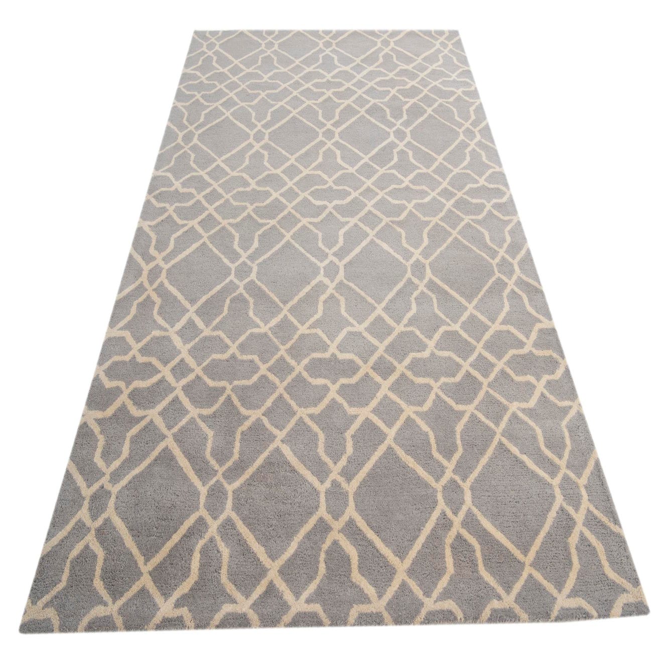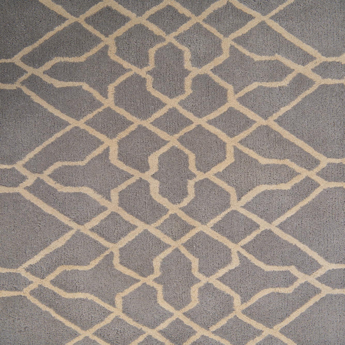 The Luna Collection offers a sophisticated yet approachable design to anchor your living space. This 5x8 hand-tufted rug showcases a stylish geometric lattice pattern in a light gray and ivory color palette. The background in light gray provides a neutral base, while the ivory detailing adds a subtle contrast that enriches the overall design. Crafted from a durable blend of wool and cotton, the rug offers a texture that is soft to the touch and comfortable underfoot.