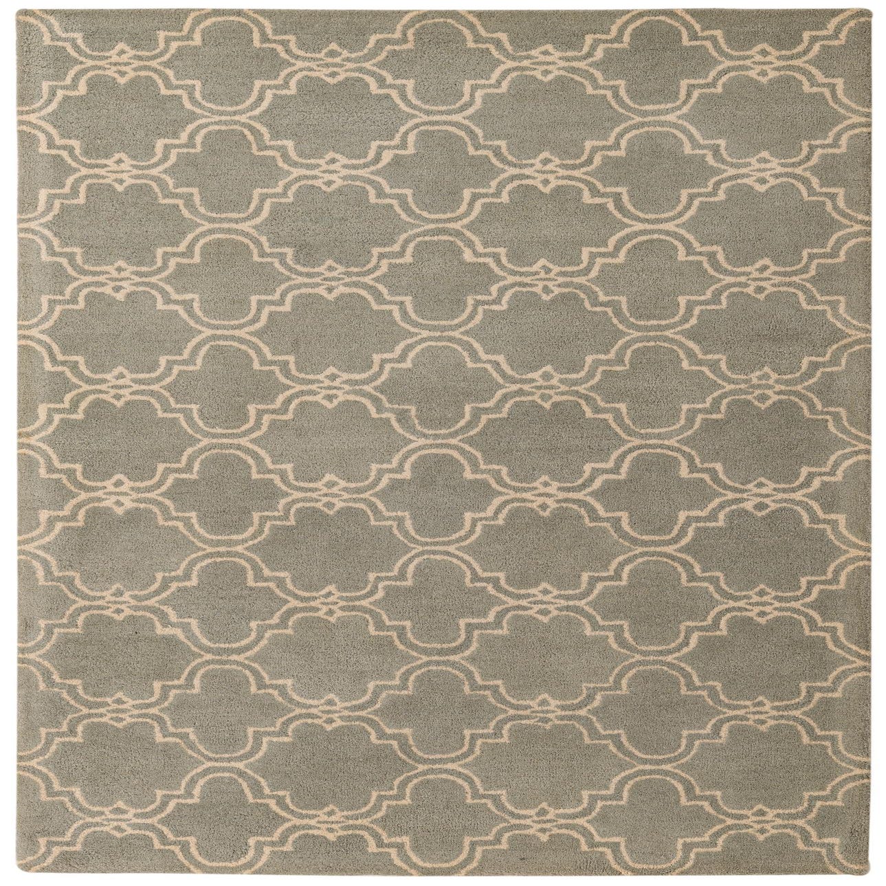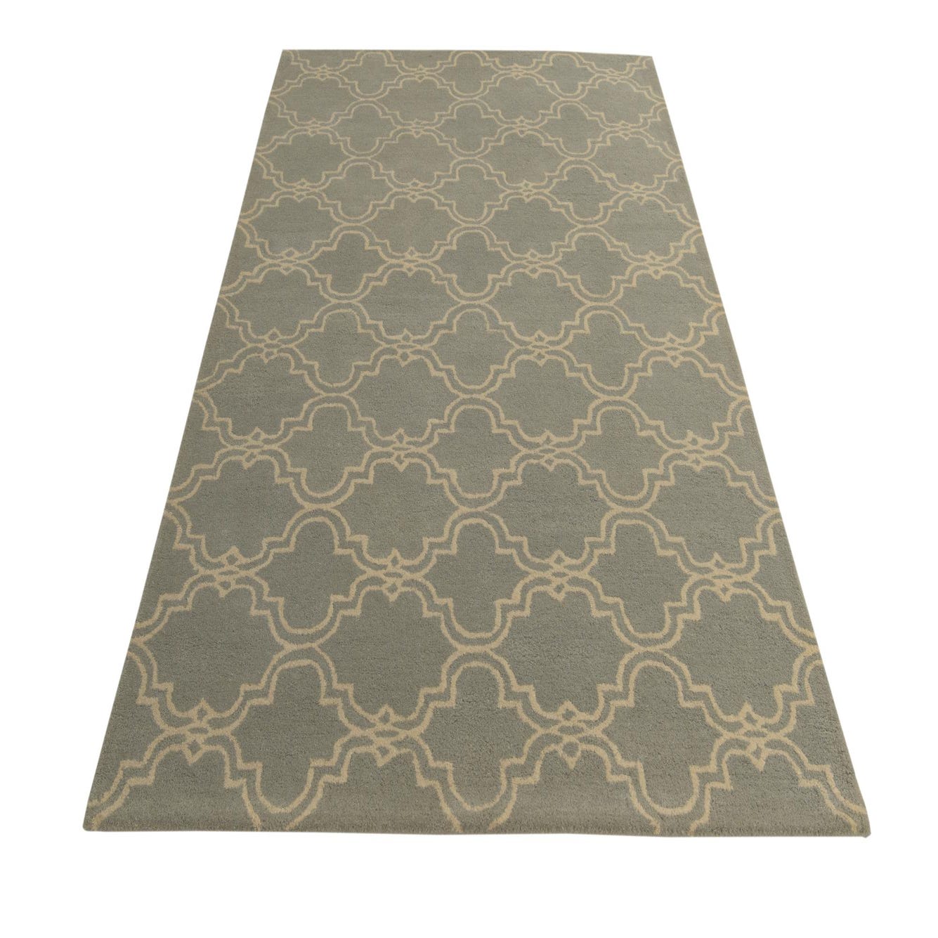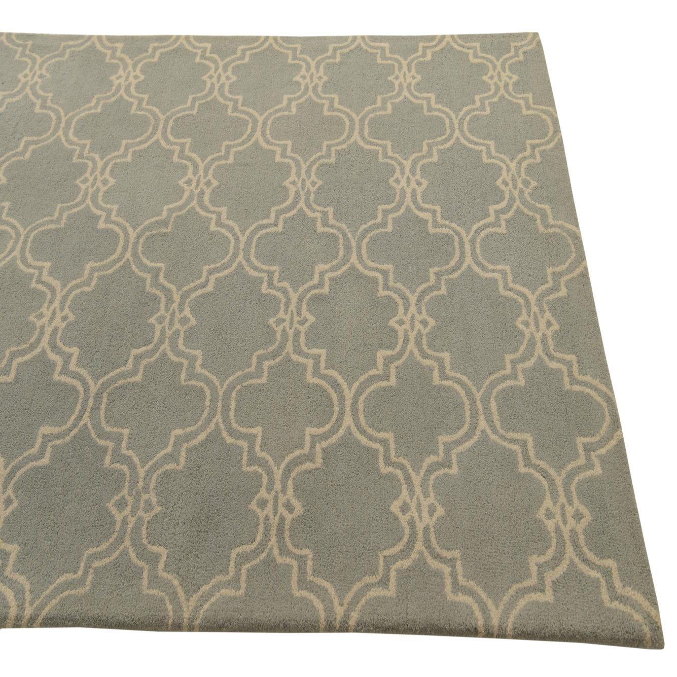 The Luna Collection offers a 5x8 hand-tufted rug composed of 100% wool, featuring a sophisticated interplay of light gray and ivory hues. Its background of light gray provides a serene backdrop for the elegant ivory pattern that graces its surface. The design showcases a continuous trellis pattern that lends a classic touch to its contemporary aesthetic.