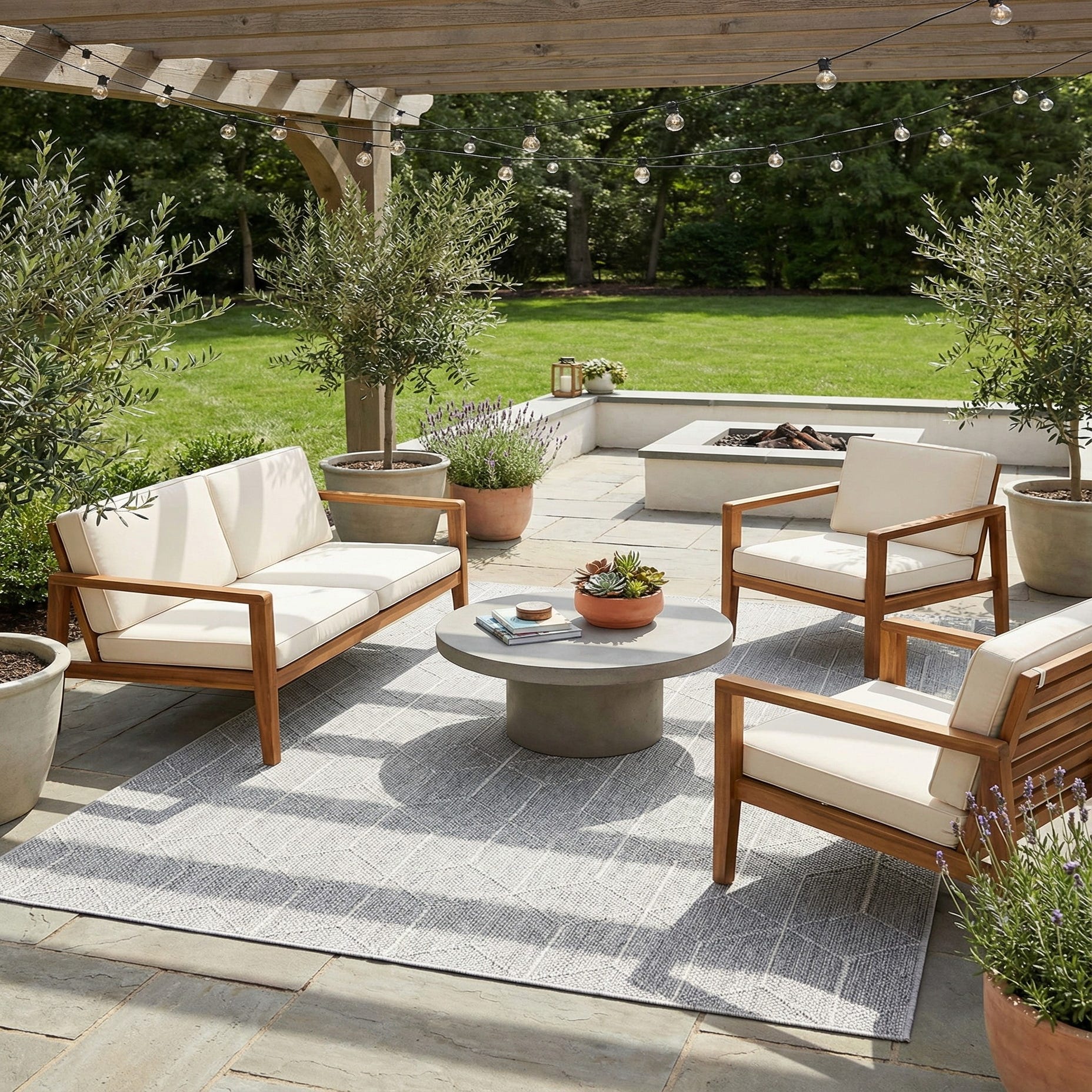 Made from 100% polypropylene, this piece offers durable, low-maintenance performance for busy areas. Its neutral palette and modern geometry suit coastal, Scandinavian, or contemporary interiors and work equally well on a covered porch or sunroom. Use it to anchor a small dining nook, place beneath a bistro set on a patio, or layer over hardwood for added visual interest without overwhelming the room.
