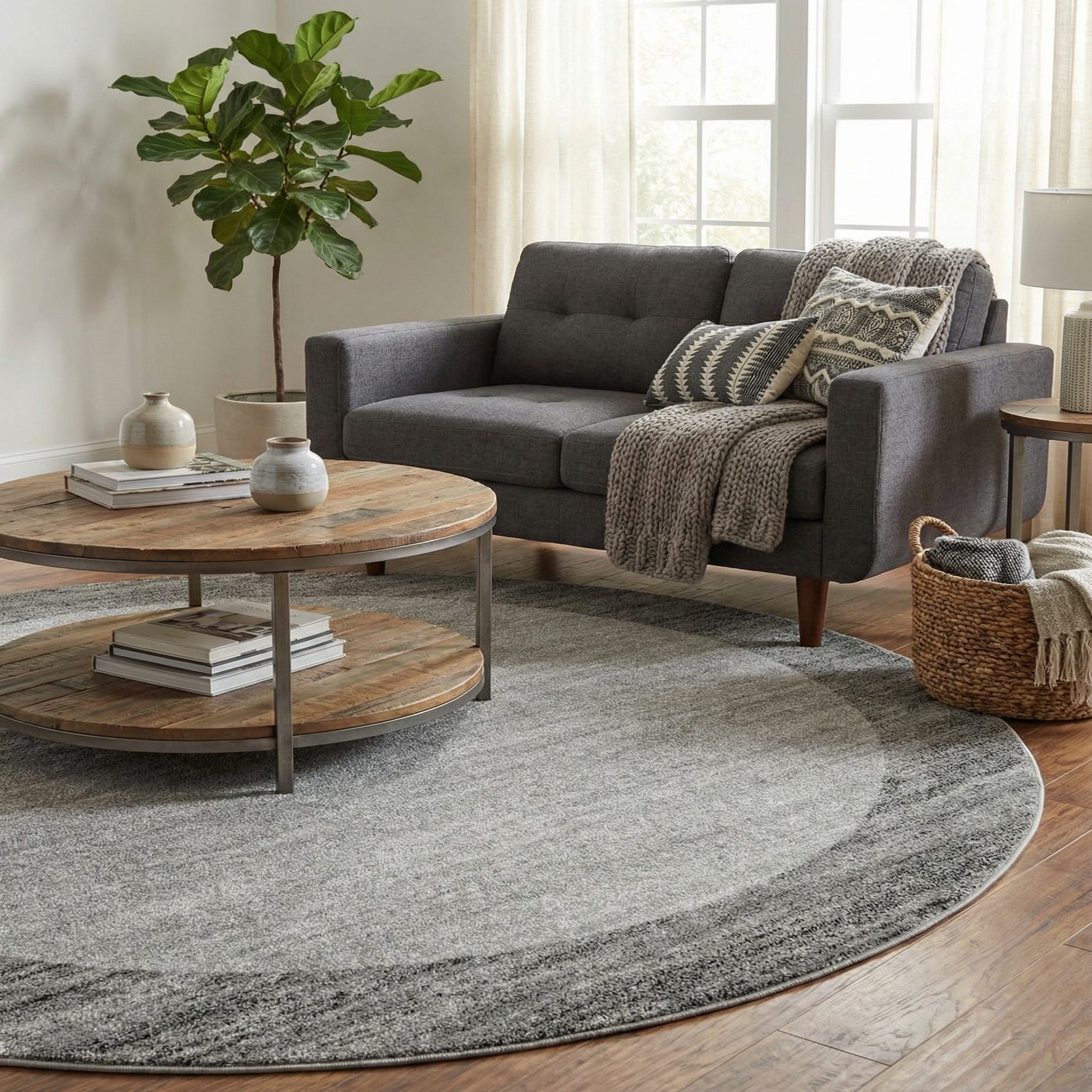 This rug works well beneath a round dining table or to anchor a small seating group, bringing a calm, modern foundation to the room. Pair it with light wood or black metal furniture, neutral upholstery and textured accents like linen curtains or a chunky knit throw for a relaxed, contemporary vibe. It also complements Scandinavian, transitional, and minimalist interiors, making it a versatile choice for living rooms, bedrooms, home offices, or entry spaces where a shaped anchor is desired.