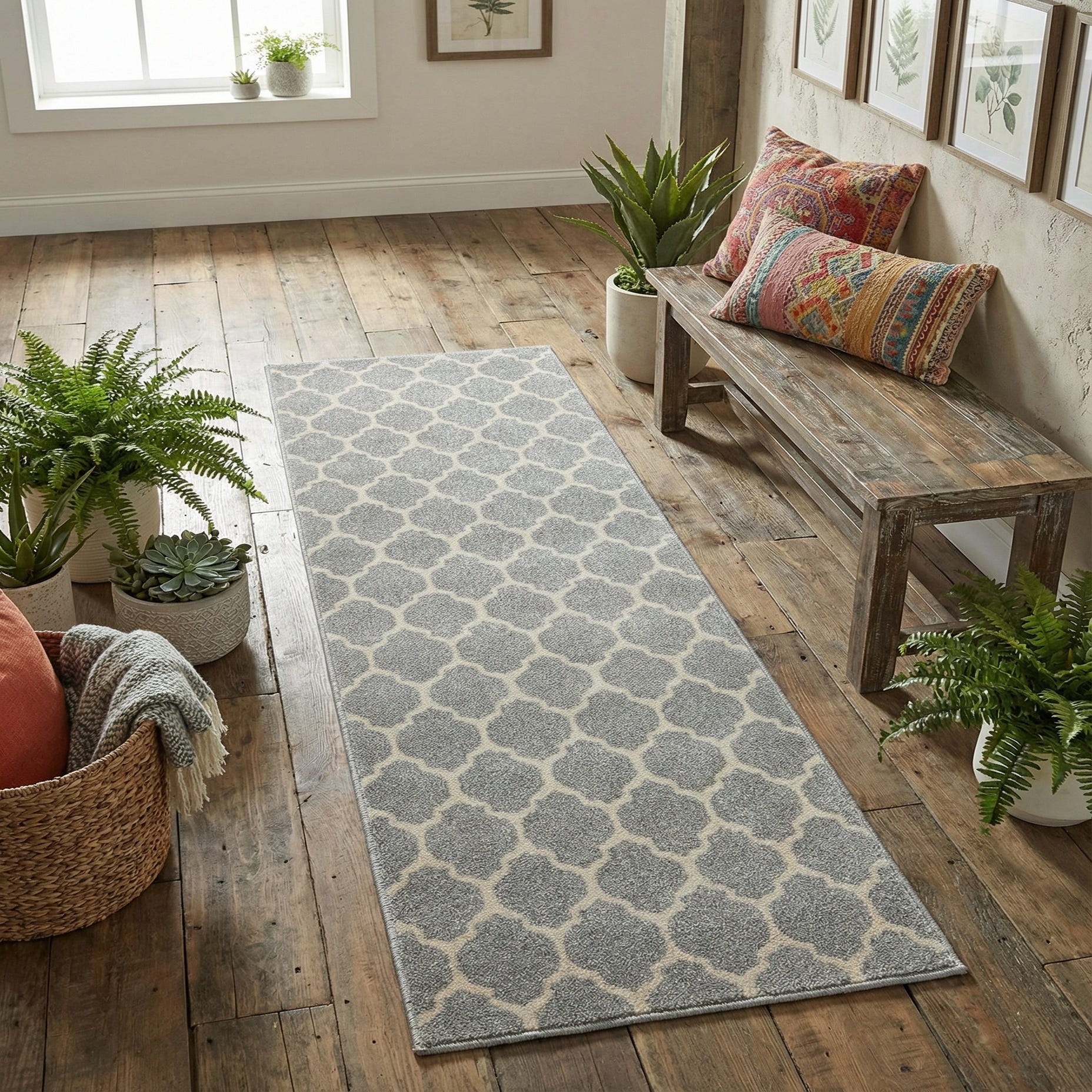 Ideal for narrow spaces that need a finishing touch, this runner works well in hallways, entryways, and alongside kitchen islands or bedside. Its neutral palette complements contemporary and transitional interiors, Scandinavian or coastal schemes, and warm wood tones—pair it with light furniture, matte metal accents, or layered rugs to bring depth and cohesion to the space.