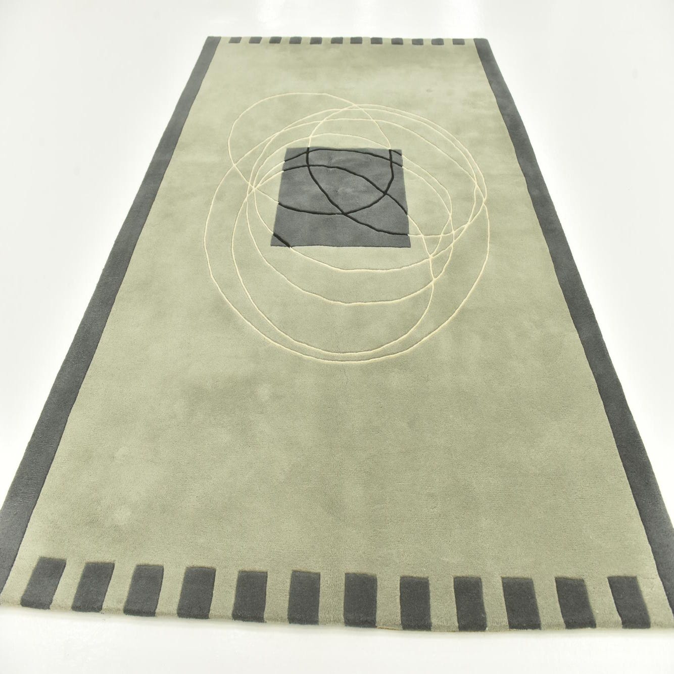 This rug suits contemporary and transitional interiors where clean lines and subtle graphic interest are desired. Place it beneath a low-profile sofa and coffee table to anchor a living room, layer it under a bed to introduce gentle pattern into a neutral bedroom, or use it in a home office to soften hard surfaces and add visual focus. It pairs well with warm wood furniture, black metal accents, ivory textiles, and muted green or gray upholstery for a cohesive, modern look.