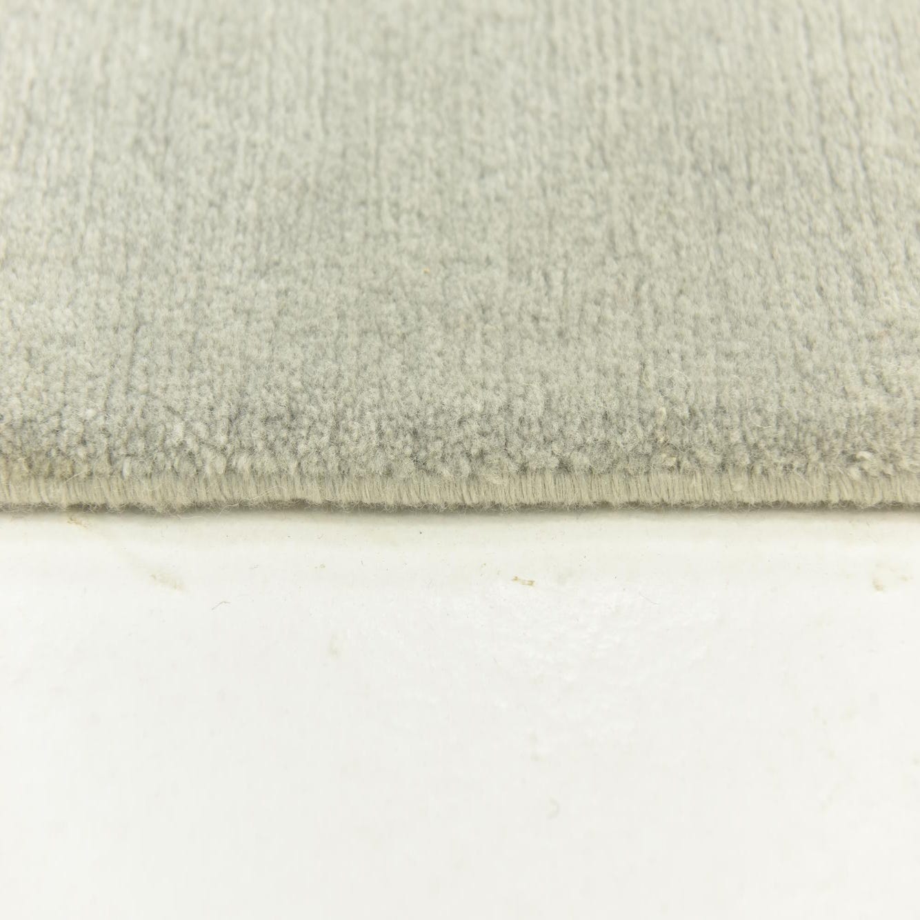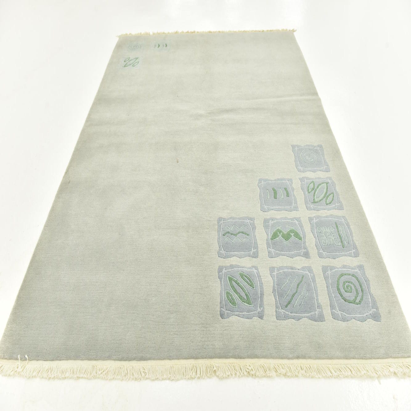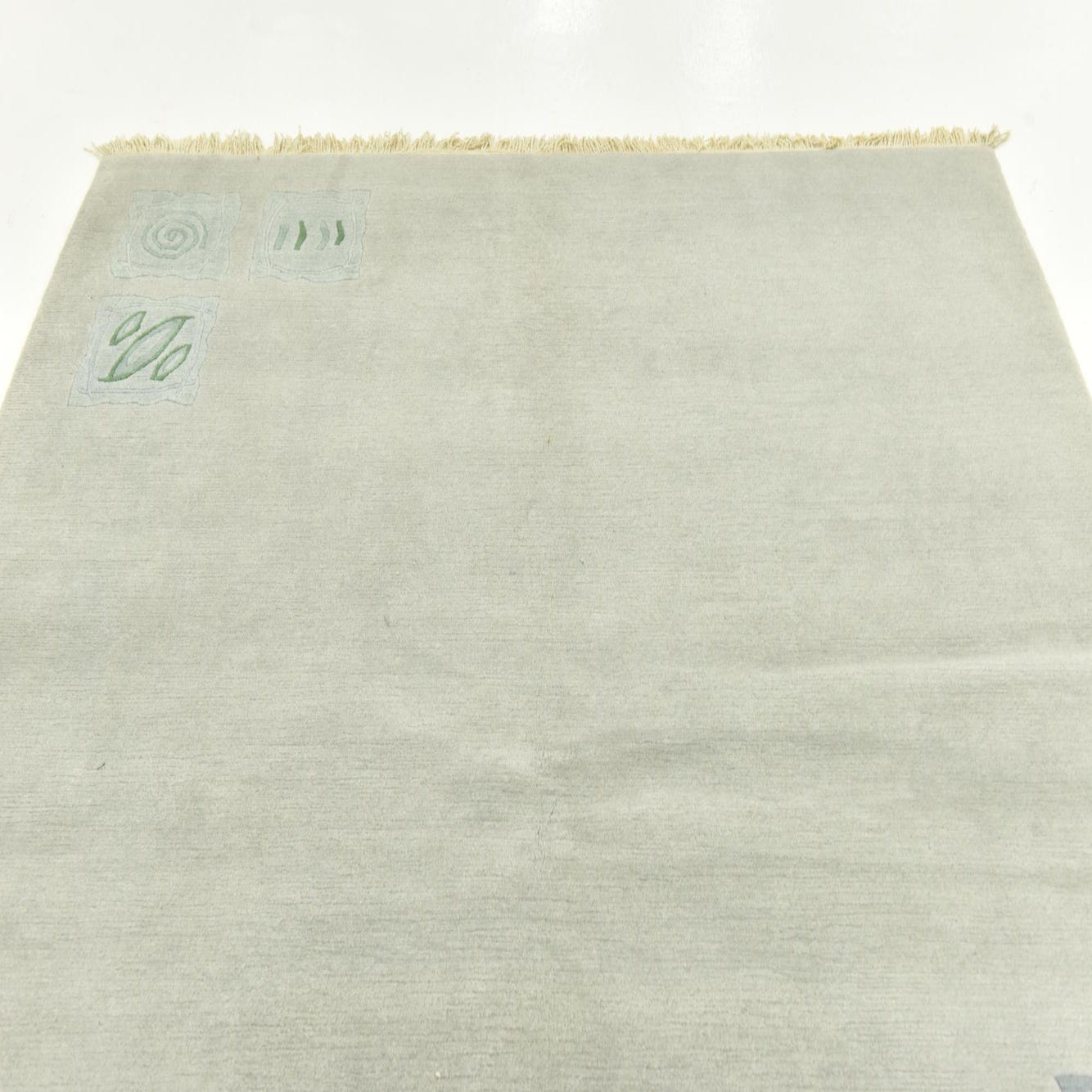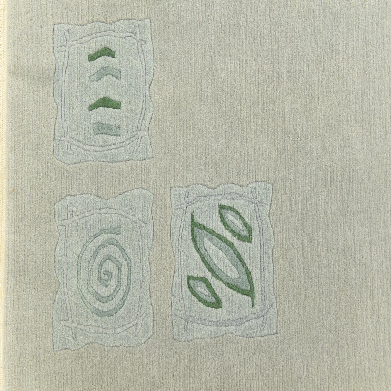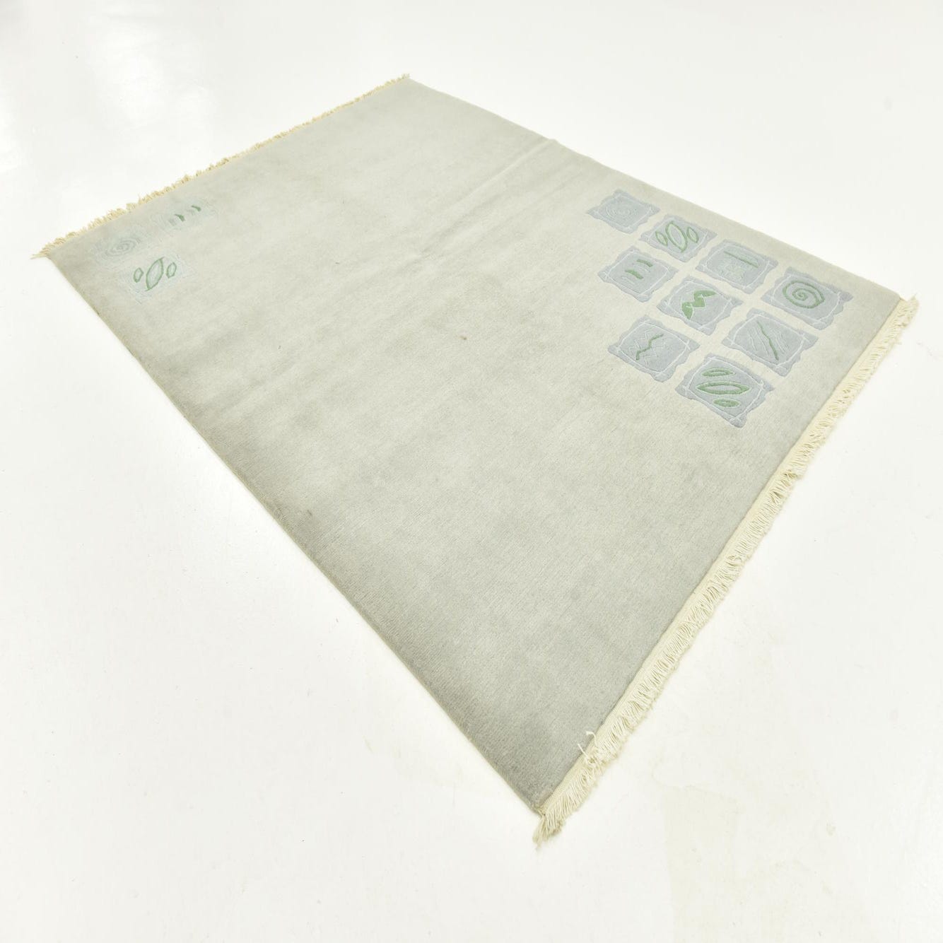 The Nepal collection rug is a hand-knotted 6x9 piece crafted from 100% wool, reflecting a dedication to quality and longevity. The rug features a light gray background that provides a serene and neutral canvas for the subdued pattern that adorns it. Further enhancing the design is a series of abstract motifs expressed in a palette of light blue and green, offering a gentle contrast without overwhelming the senses.
