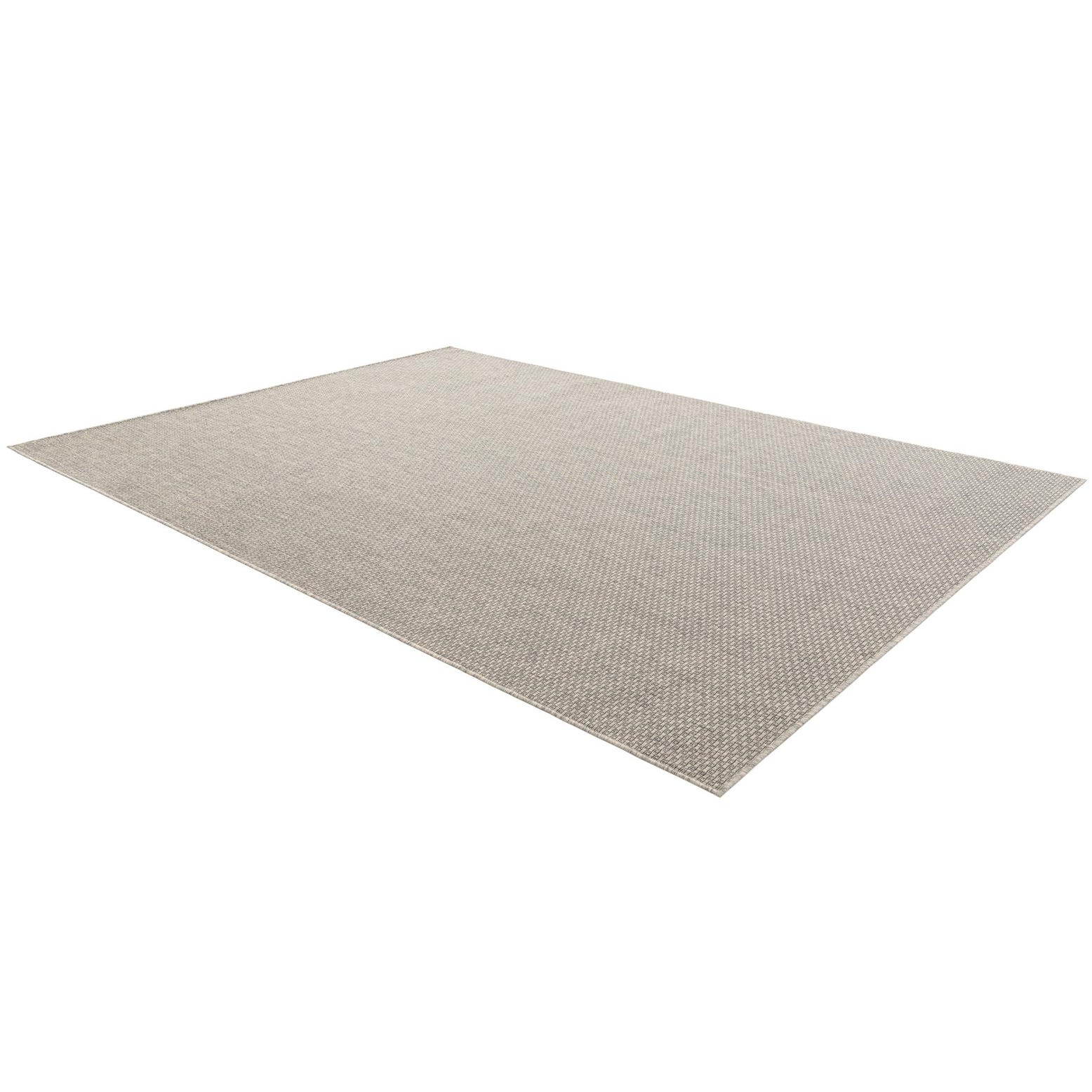 This understated gray palette and streamlined pattern work well with modern, coastal, and transitional schemes. Place it on a covered patio or sunroom to ground wicker seating and pale wood accents, layer it under a glass-top dining table to keep sightlines open, or use it in a living room where clean lines and neutral tones are the priority. The low pile and simple design make it an effective foundation for both textured throws and brighter accent pieces.