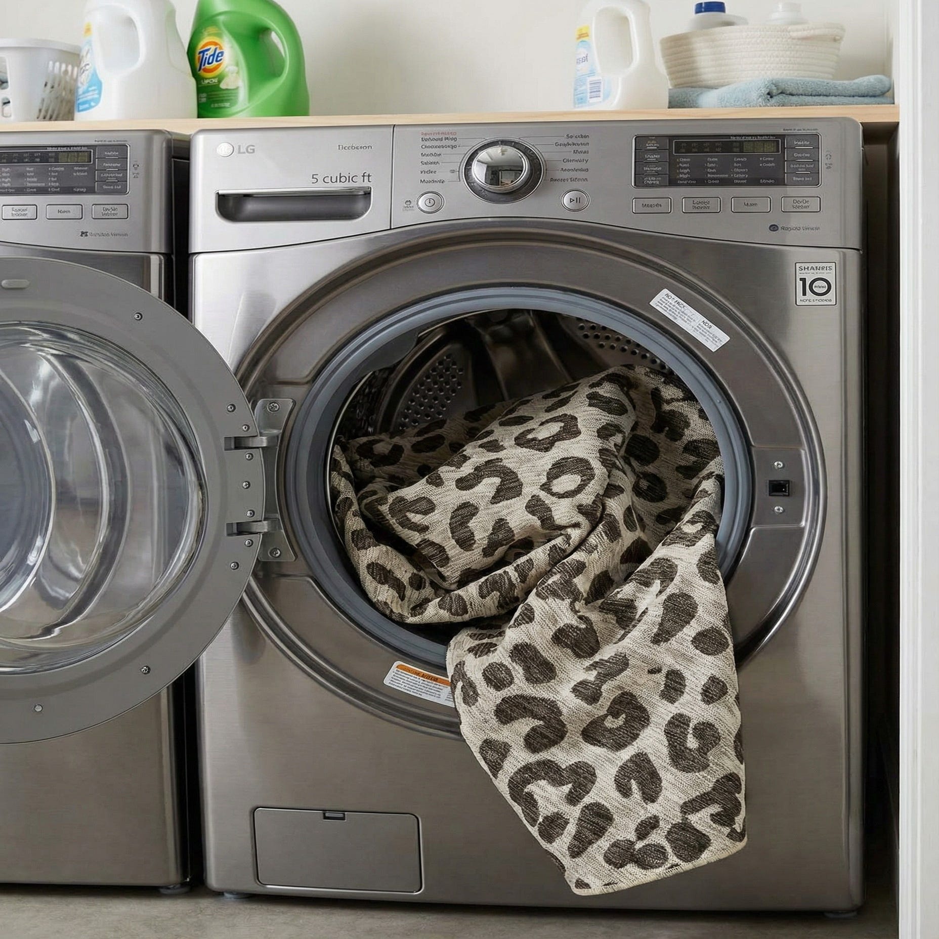 A modern take on animal print, this round rug pairs charcoal-gray spots with a light gray background for a relaxed, hand-drawn leopard motif. Machine-made of 100% polypropylene, the weave produces a low-profile surface that feels smooth with a subtle textured grain where the pattern lies—sturdy and even underfoot without a high pile. The neutral gray palette keeps the look contemporary and easy to layer with other finishes.