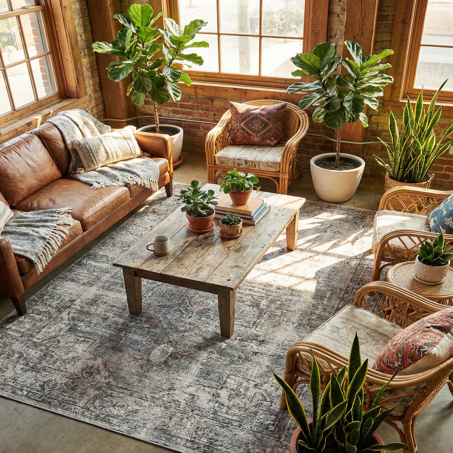 This rug works well in a range of interiors: place it under a neutral sofa to anchor a contemporary living room, set it beneath a wood dining table for a balanced modern farmhouse look, or layer it in a bedroom with soft linens and light wood tones for a calm, collected feel. The restrained palette of light gray, black and ivory pairs easily with both warm woods and cool metal accents, making it a versatile choice for transitional, Scandinavian-inspired, or urban loft spaces.