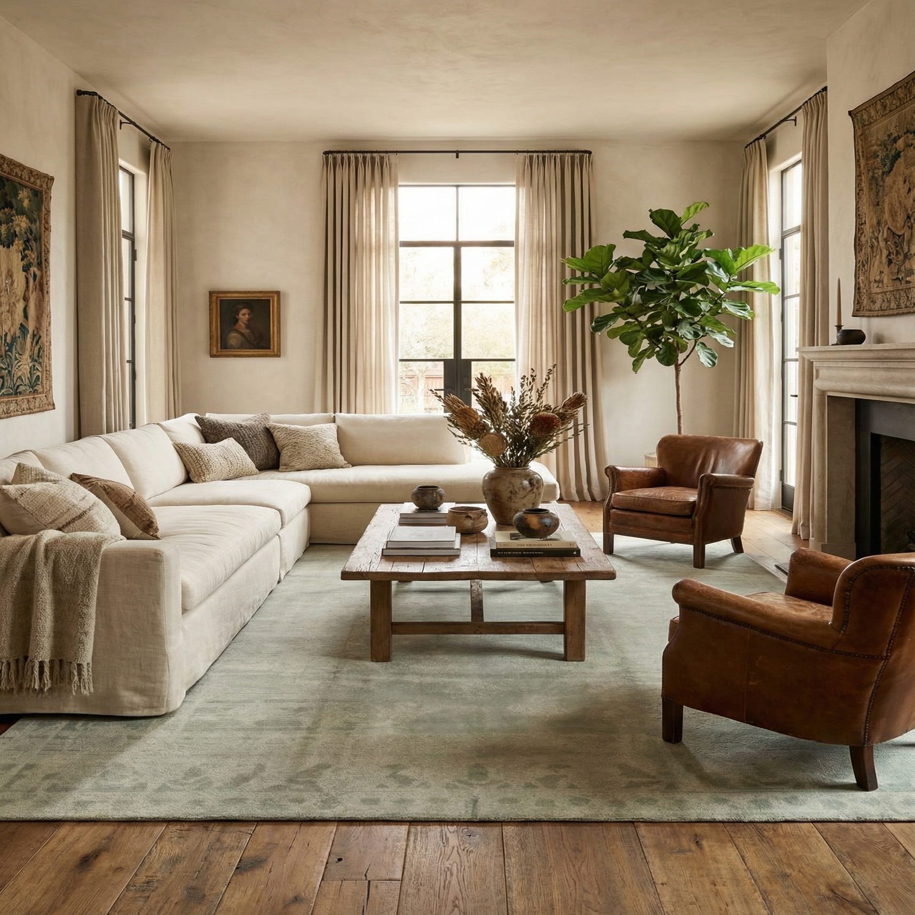 This piece works well as a neutral anchor in a living room beneath a sofa and coffee table, or layered under a bed to bring quiet texture to the bedroom. It pairs nicely with warm wood furniture, natural linens, and matte metal accents — ideal for Scandinavian, transitional, or contemporary interiors that favor calm, understated palettes. Use it to soften open-plan spaces or to balance more graphic furnishings while keeping the room light and airy.