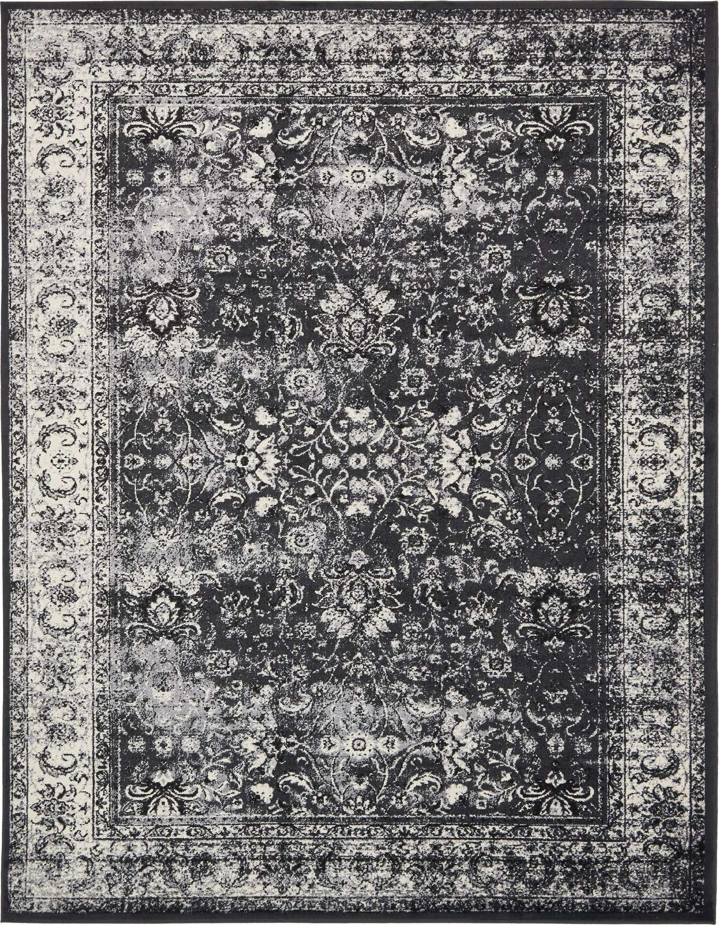 Primary color is Light Gray. Colors in this rug include: Light Gray, Black, Ivory.