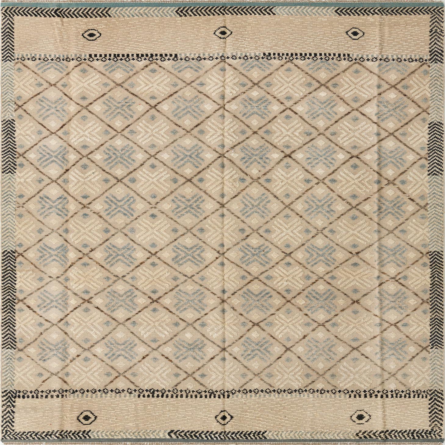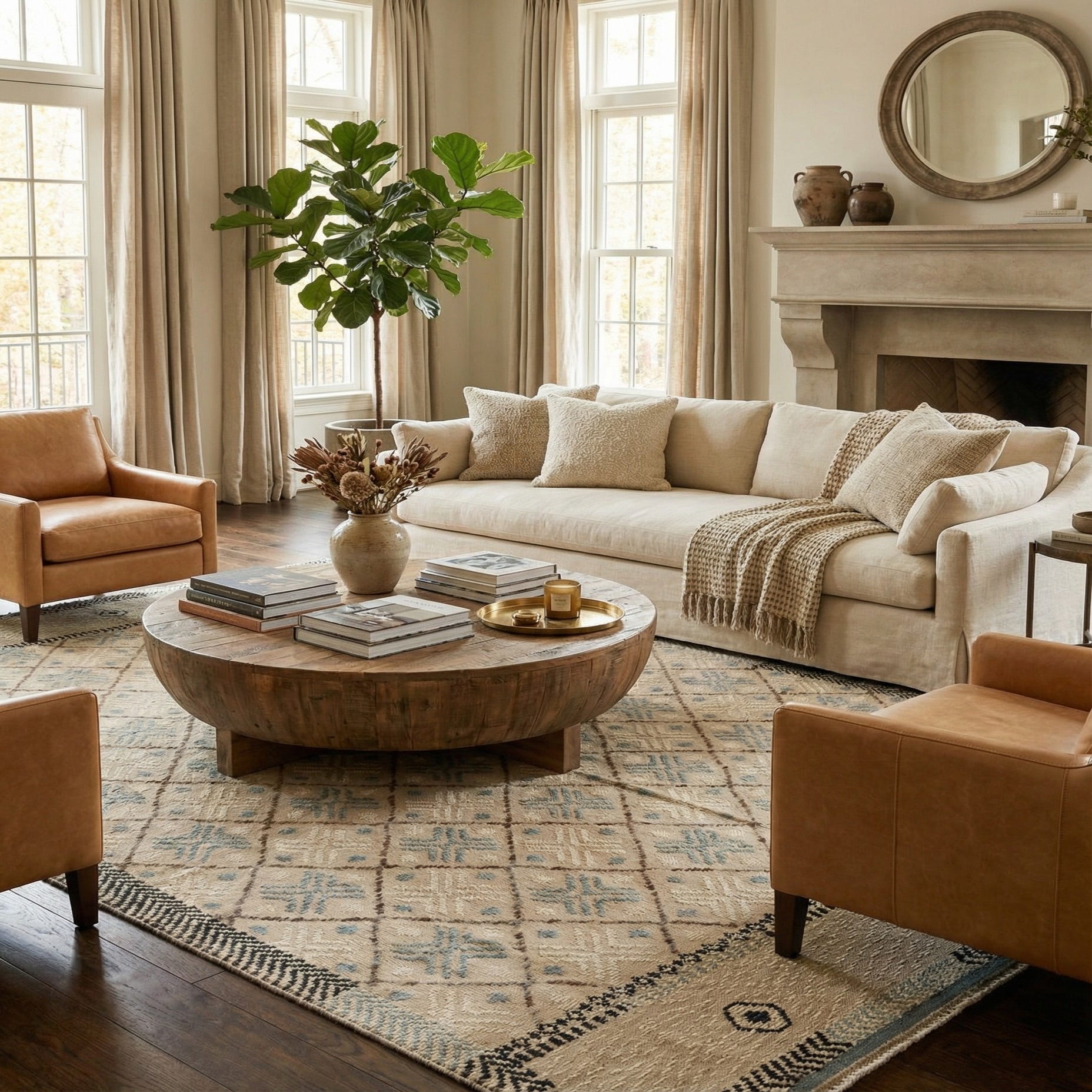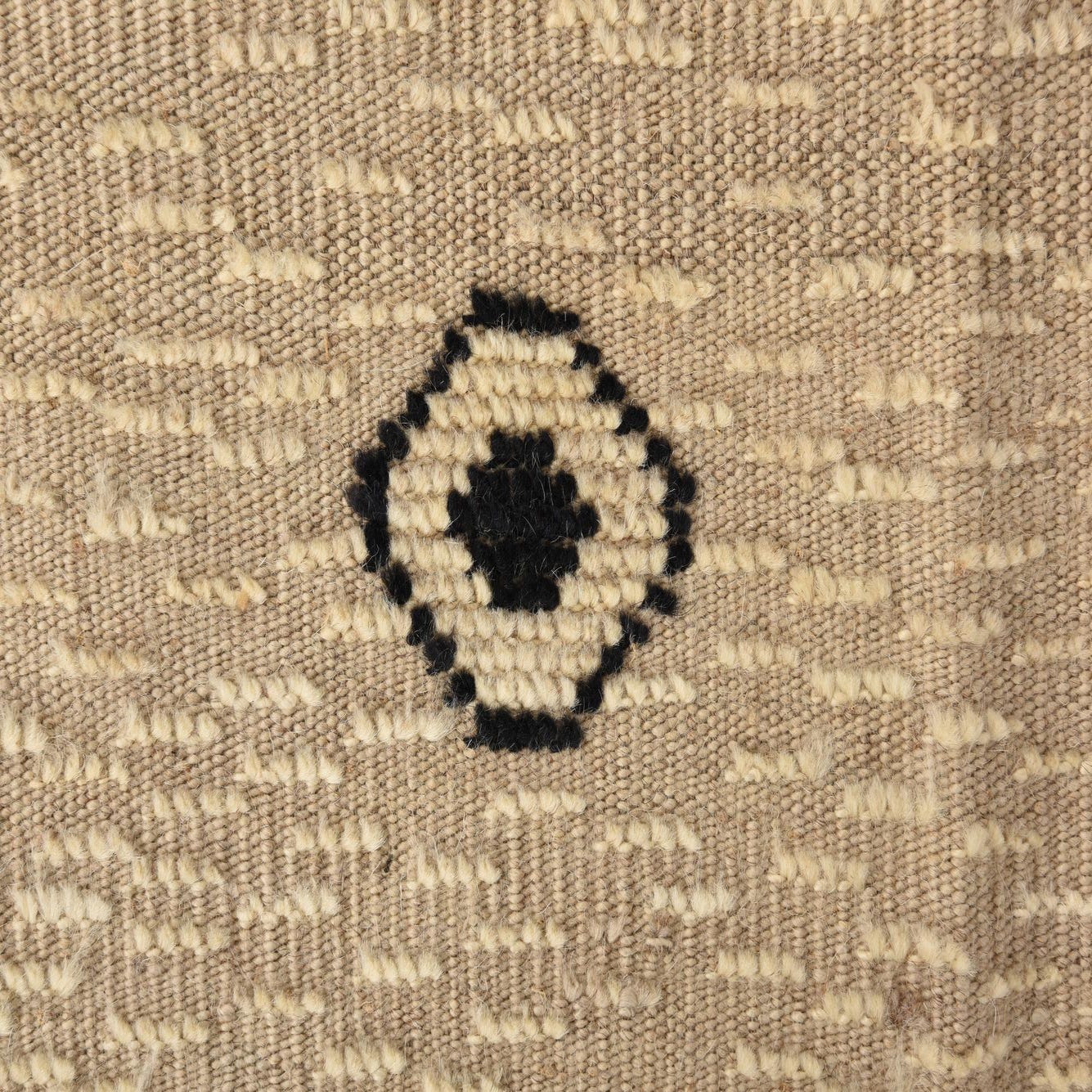 This rug pairs easily with neutral sofas and warm wood tones to anchor a living space, or it can sit beneath a dining table to introduce pattern without dominating the room. Its restrained palette and timeless geometry also work well in a bedroom for quiet, layered warmth or in an entry to set a composed, welcoming tone. Style-wise it fits transitional and modern farmhouse interiors, as well as Scandinavian or globally inspired schemes that favor natural materials and understated pattern.