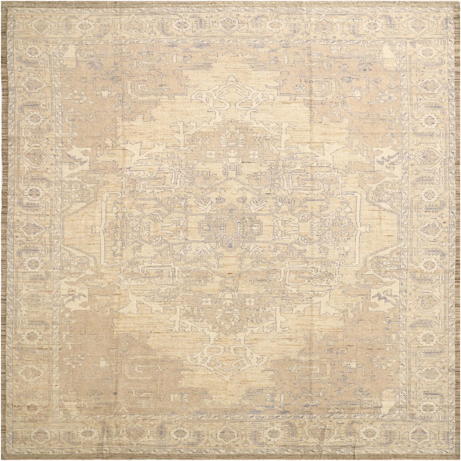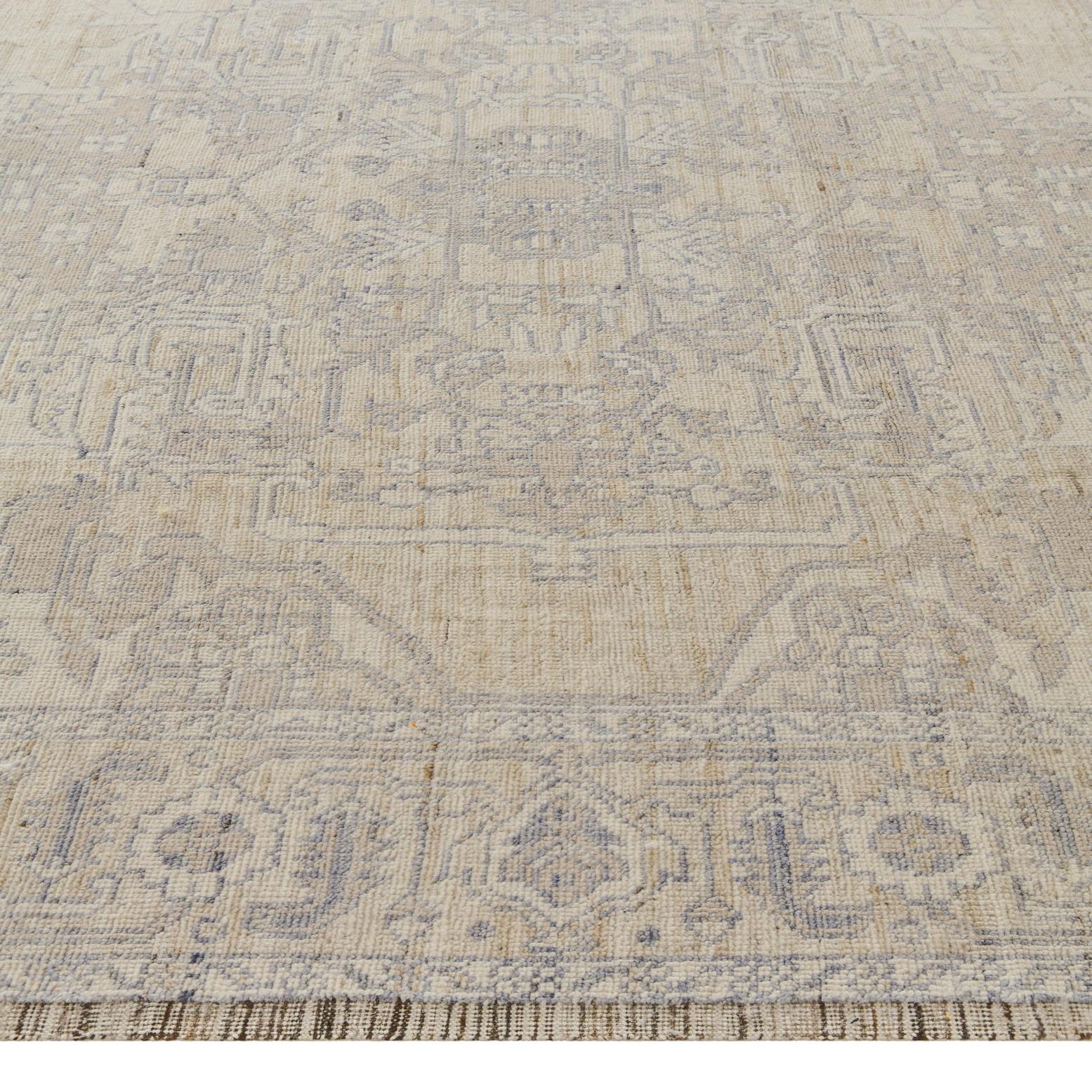 Primary color is Light Gray. Colors in this rug include: Light Gray, Beige, Blue, Brown, Ivory.