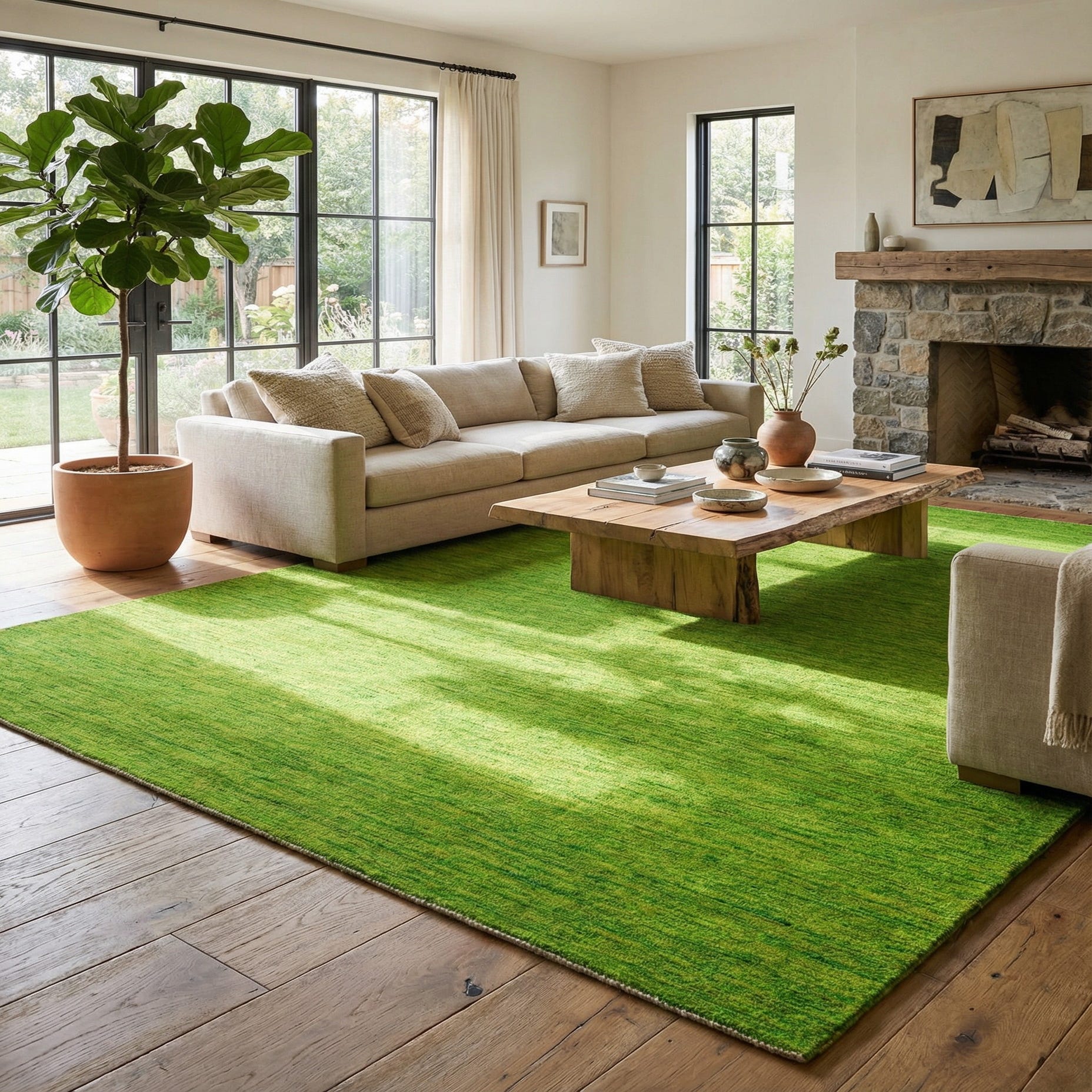 Hand-knotted, 100% wool gives the rug a dense, pleasantly tactile surface; underfoot it feels cushiony with a slightly nubby, organic nap that adds depth to the color. Place it beneath a neutral linen sofa to warm a contemporary living room, layer it in a Scandinavian-inspired space with light wood furniture and clean lines, or use it to brighten a sunroom, nursery, or casual dining area. The uncomplicated color works well with rattan and natural textures, crisp white walls, or deeper accent tones like navy or charcoal for contrast.