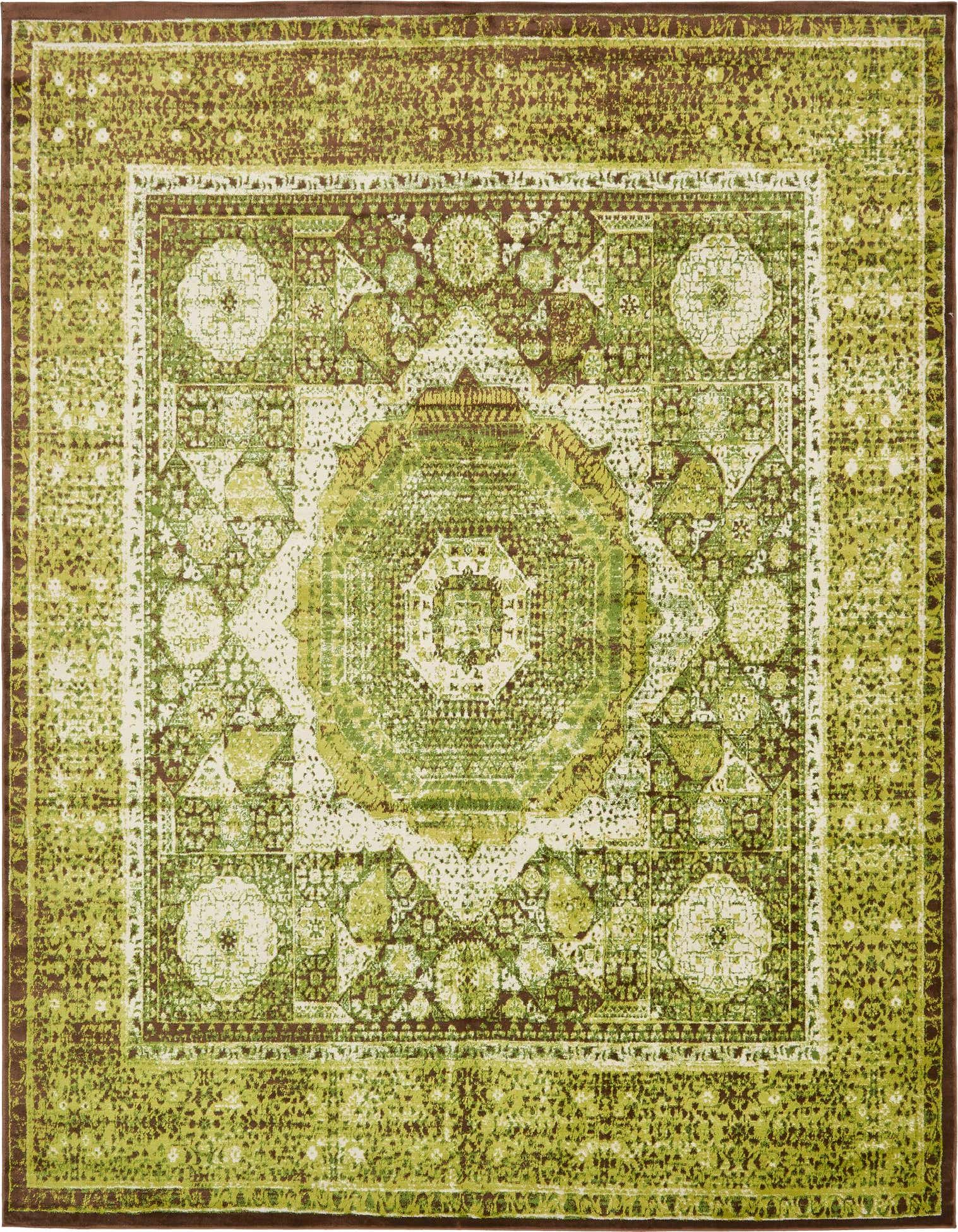Primary color is Light Green. Colors in this rug include: Light Green, Brown, Green, Ivory.