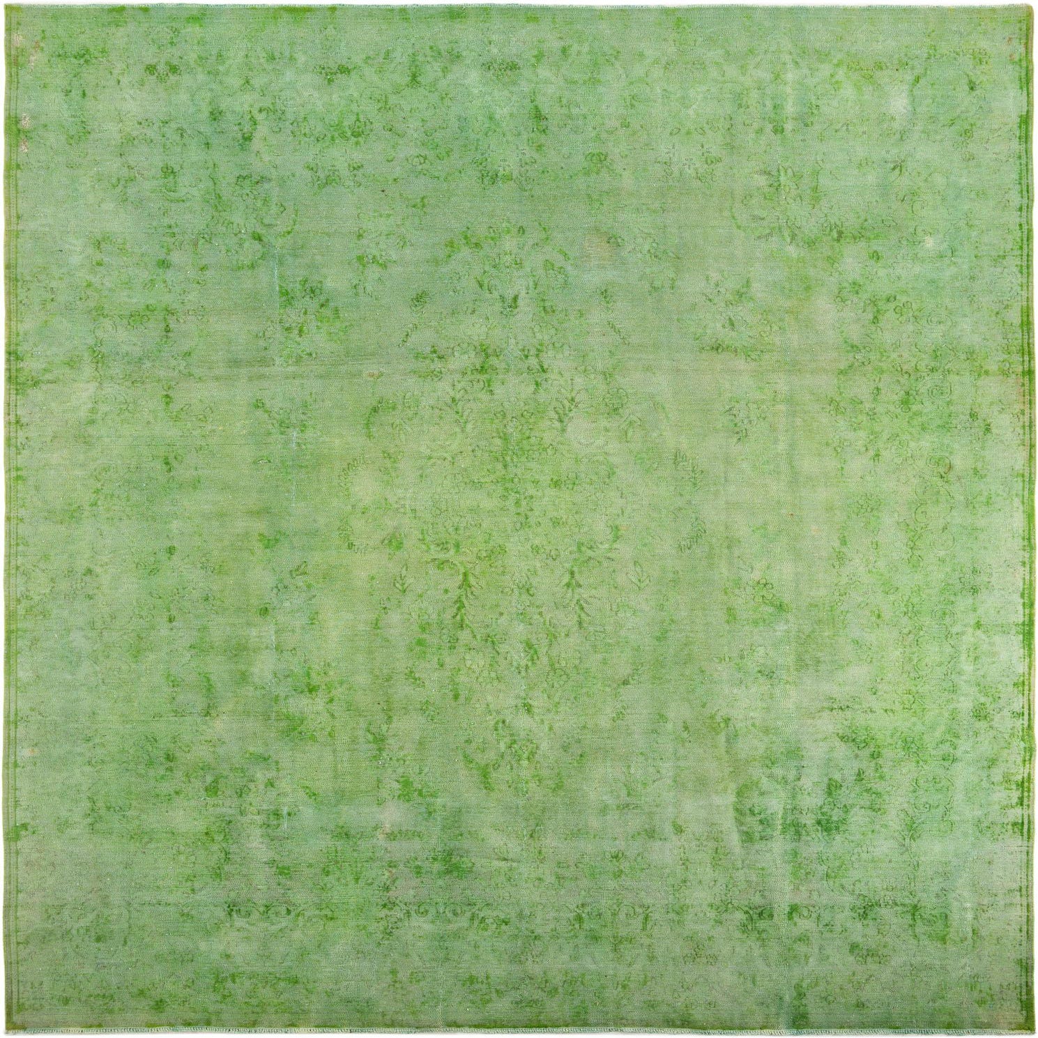 A 10x13 rectangular green Ultra Vintage rug with a subtle, distressed Persian pattern, ideal for a living room.