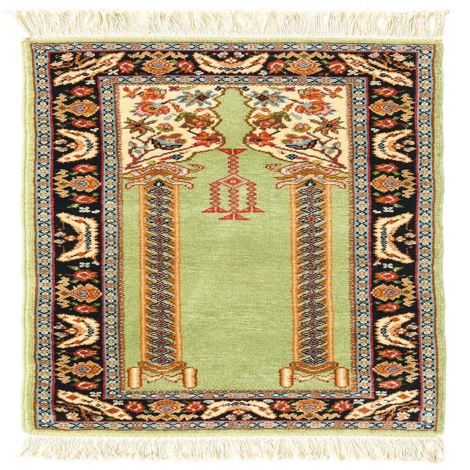 Primary color is Light Green. Colors in this rug include: Light Green, Black, Brown, Ivory, Red, Green.