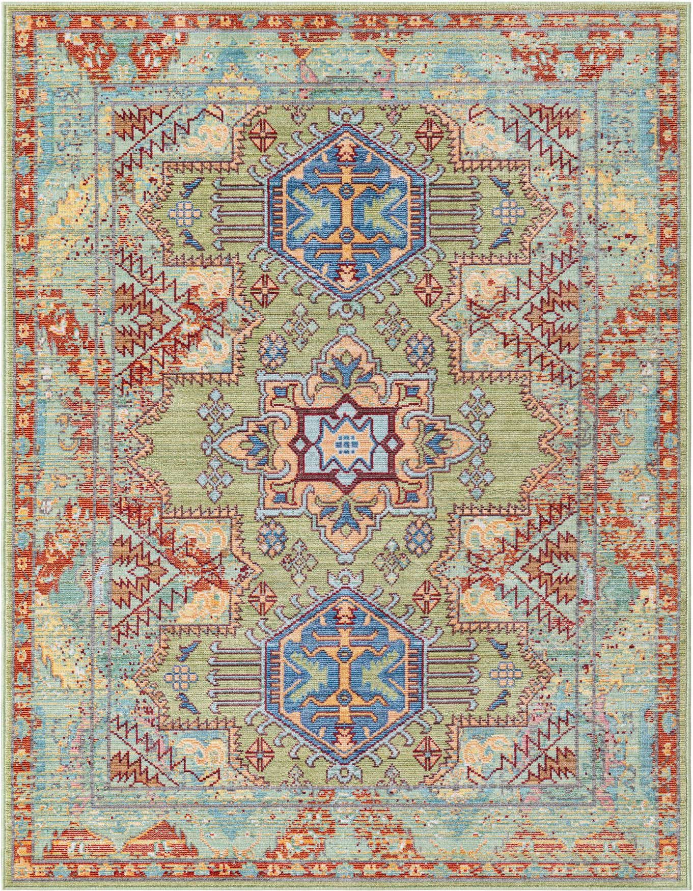 We wanted a rug for our 5th wheel that was inexpensive. The main goal was to cover the ugly green carpet we have but blend with the part that still shows. It does that perfectly plus has the aqua and purples I have in the room. It’s thin not thick and plush but soft for grandkids. It’s what I was expecting for the price. I’m happy with my purchase and the service. It was shipped right away and arrived on time.