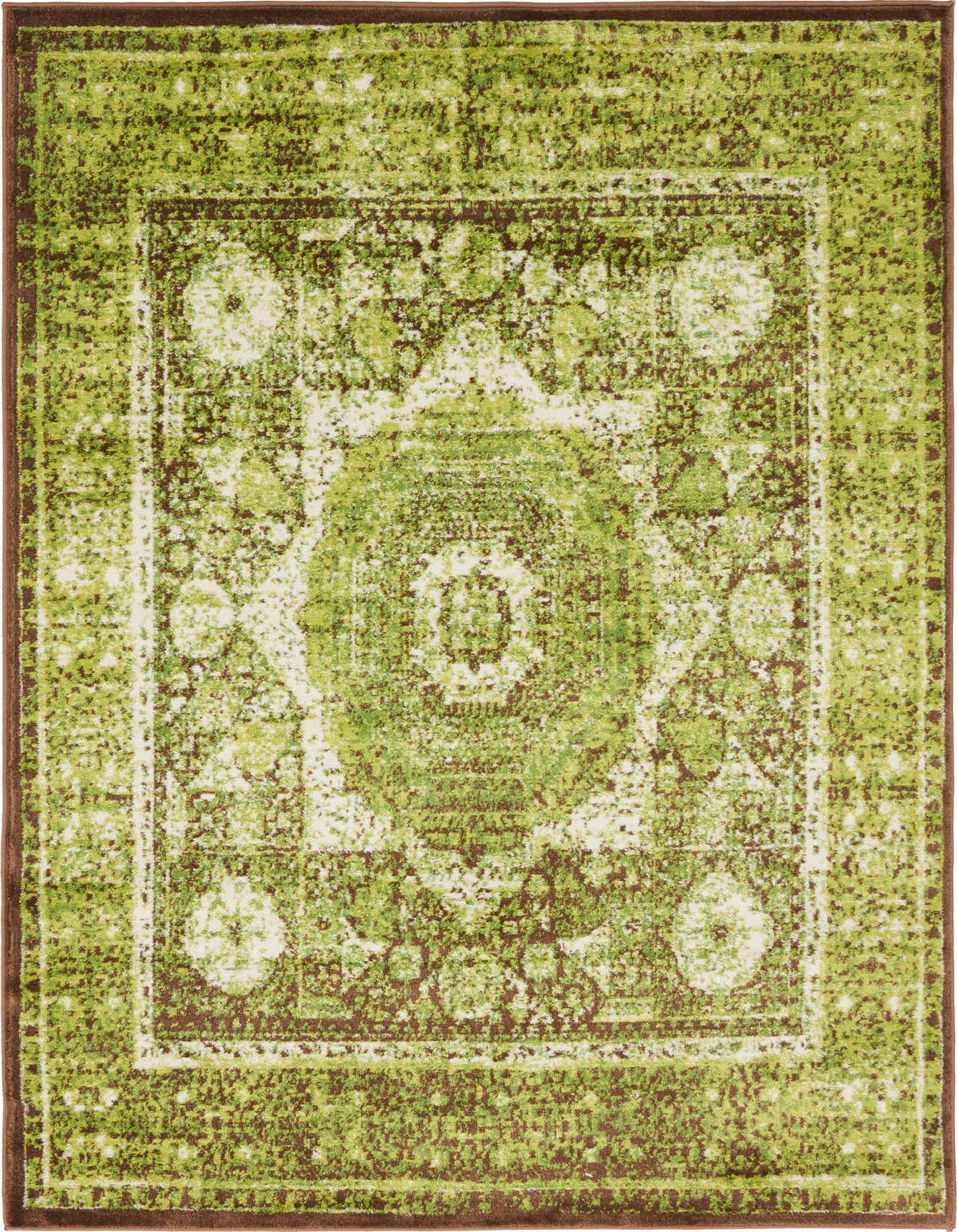 Primary color is Light Green. Colors in this rug include: Light Green, Brown, Green, Ivory.