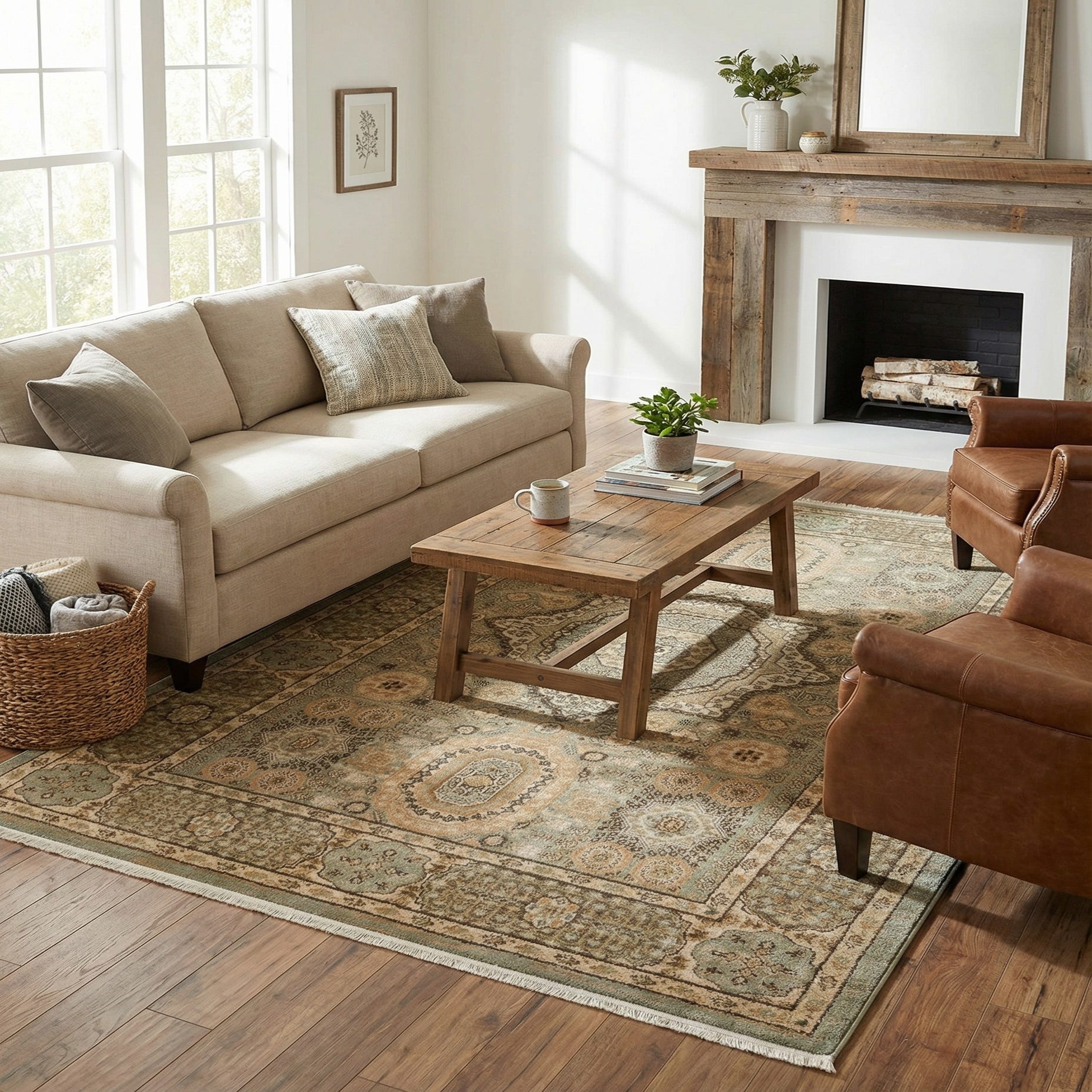 Machine-made from 100% polypropylene, this rug works well as an anchor in a relaxed living area beneath a coffee table, as a grounding piece in a bedroom at the foot of the bed, or to soften a home office or reading nook. Pair it with natural wood furniture, linen upholstery, and warm metallic accents for a transitional or cottage-inspired scheme, or layer it under modern pieces to add pattern and subtle warmth to a contemporary space.
