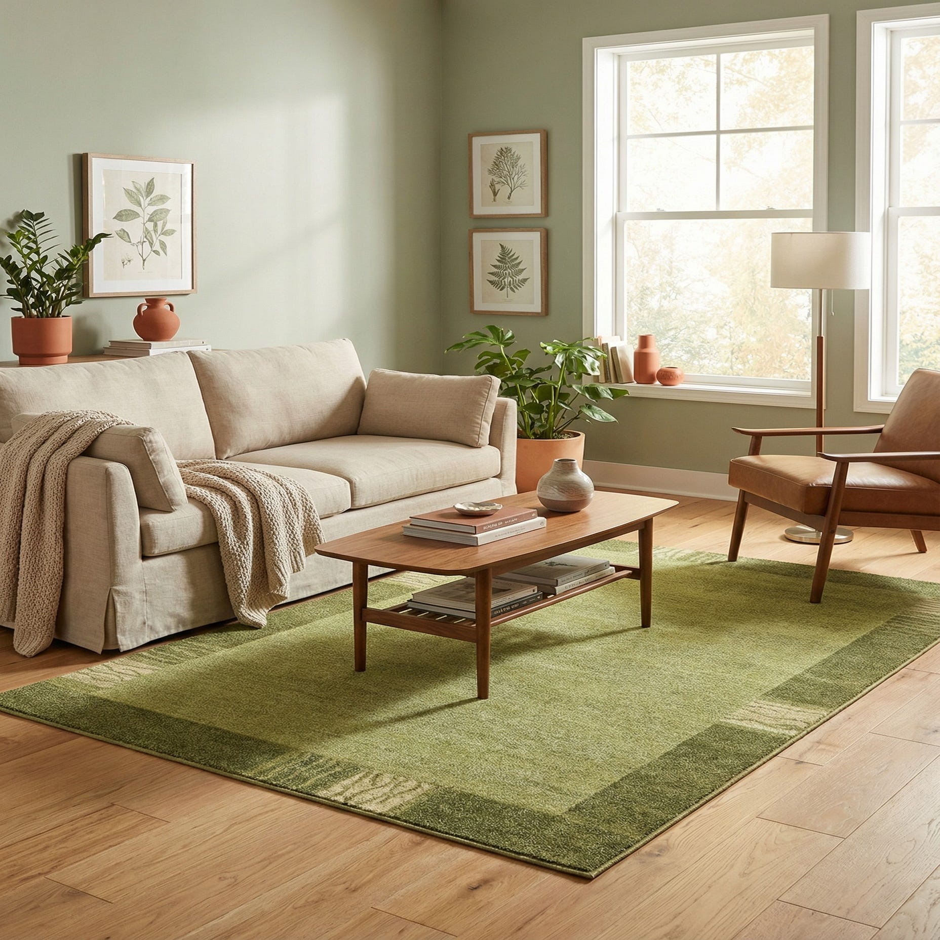 Primary color is Light Green. Colors in this rug include: Light Green, Green, Ivory.