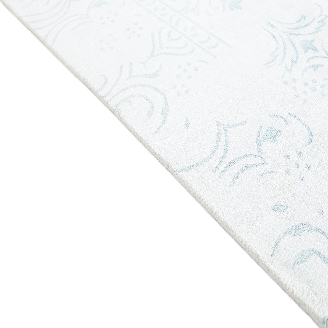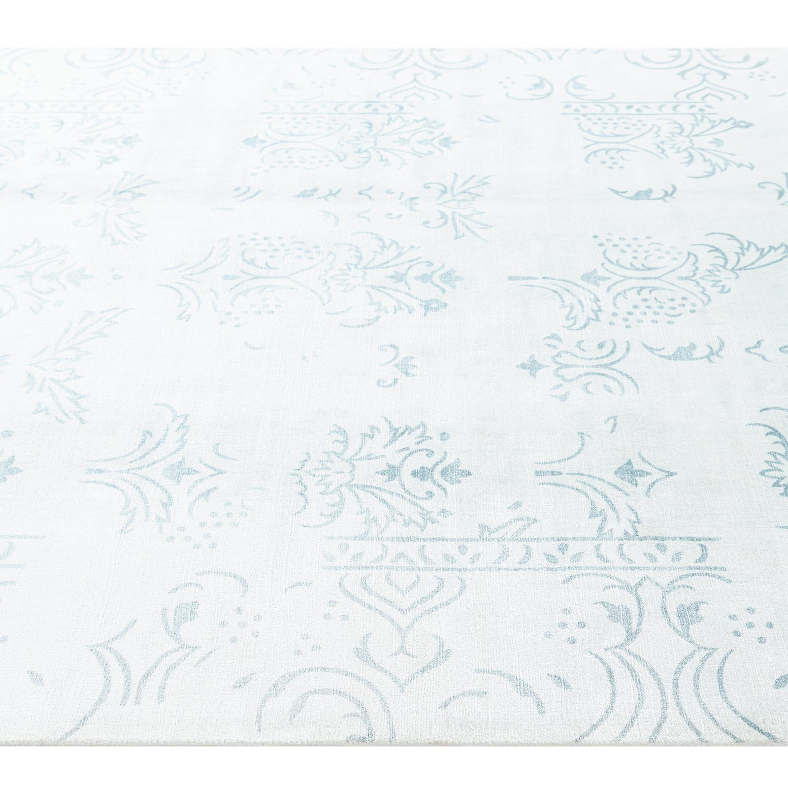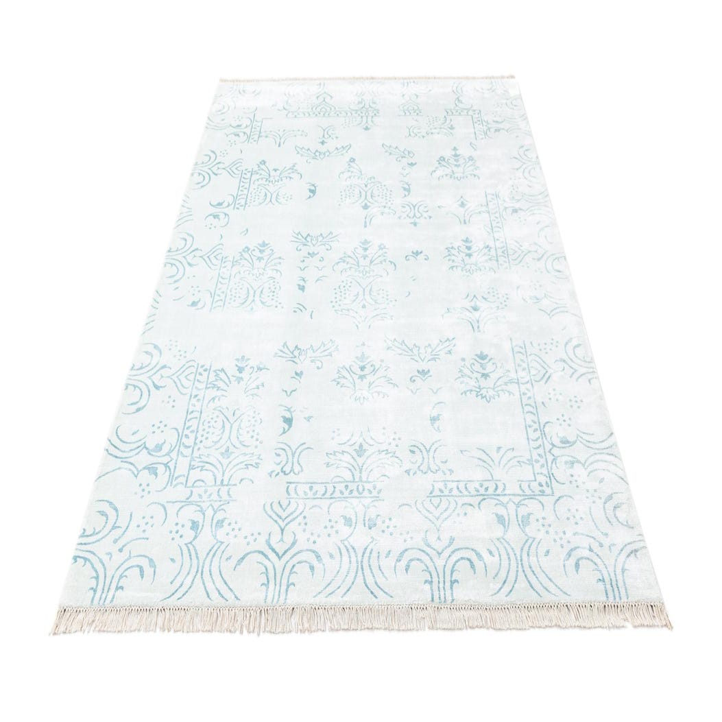 A 5x8 rectangular Darya rug by Rugs.com with a light green modern pattern on a white background, featuring short fringe.