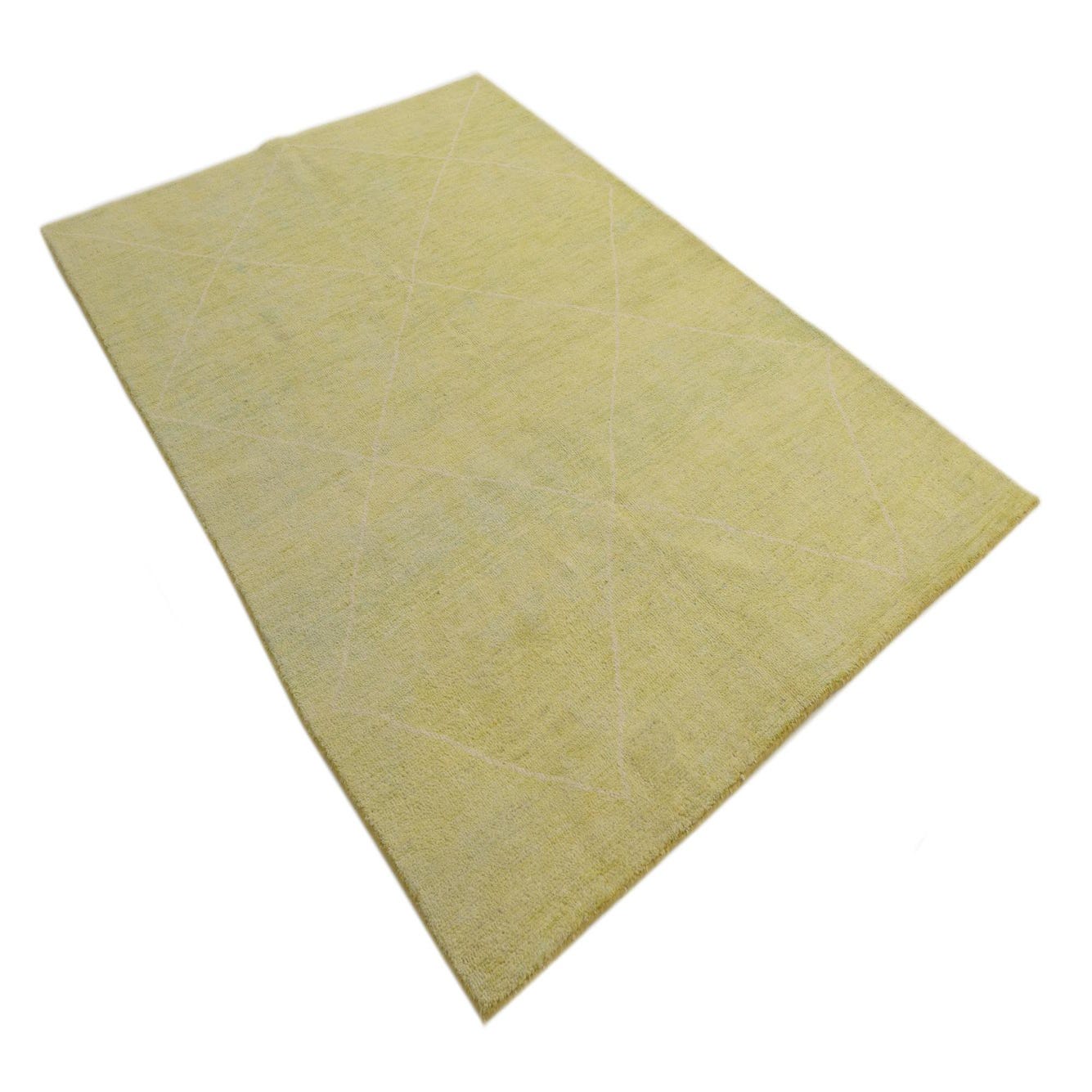 A 5x8 rectangular shag rug in varying shades of green with a subtle diamond tribal pattern.