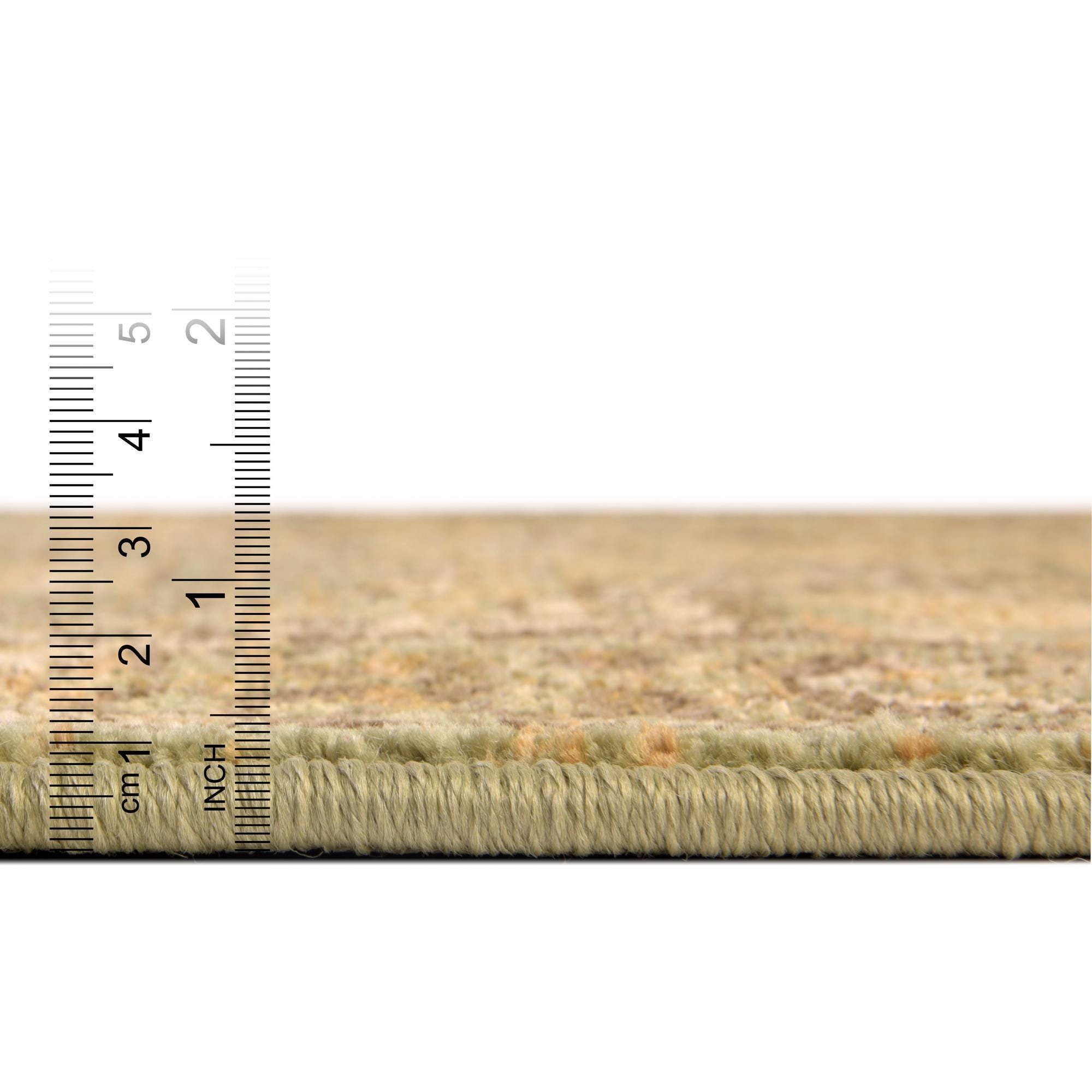 Machine-made from 100% polypropylene, this rug works well in a range of interiors. Place it beneath a round dining table or in a breakfast nook to define a casual dining area, or use it to anchor a seating cluster in a living room where warm wood furniture and cream upholstery bring out the lighter tones. It also pairs nicely with woven accents, brushed brass details, and neutral walls for a relaxed traditional or transitional look.