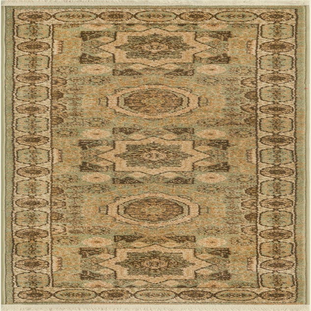 Primary color is Light Green. Colors in this rug include: Light Green, Brown, Cream, Light Brown, Olive, Beige.