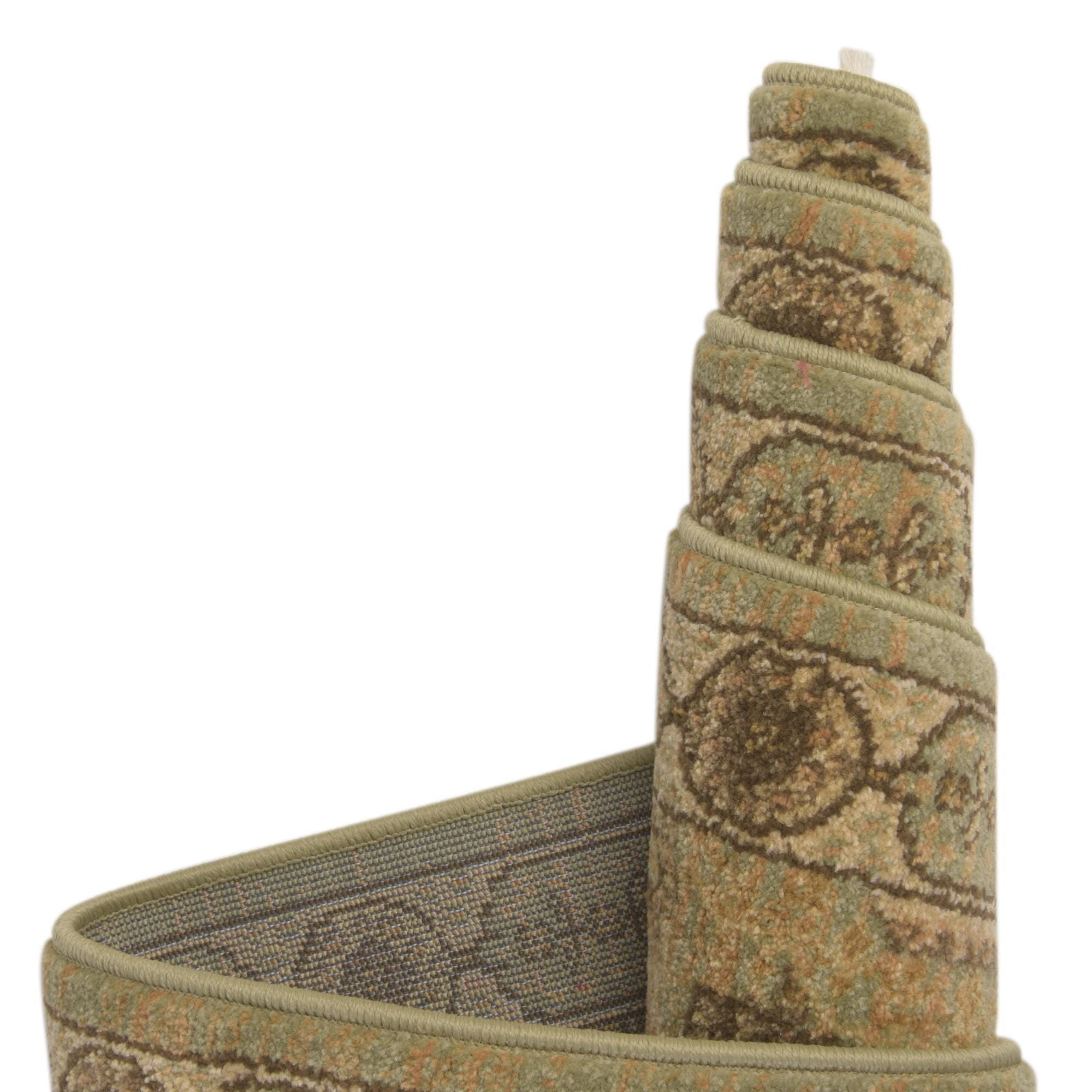Primary color is Light Green. Colors in this rug include: Light Green, Brown, Cream, Light Brown, Olive, Beige.