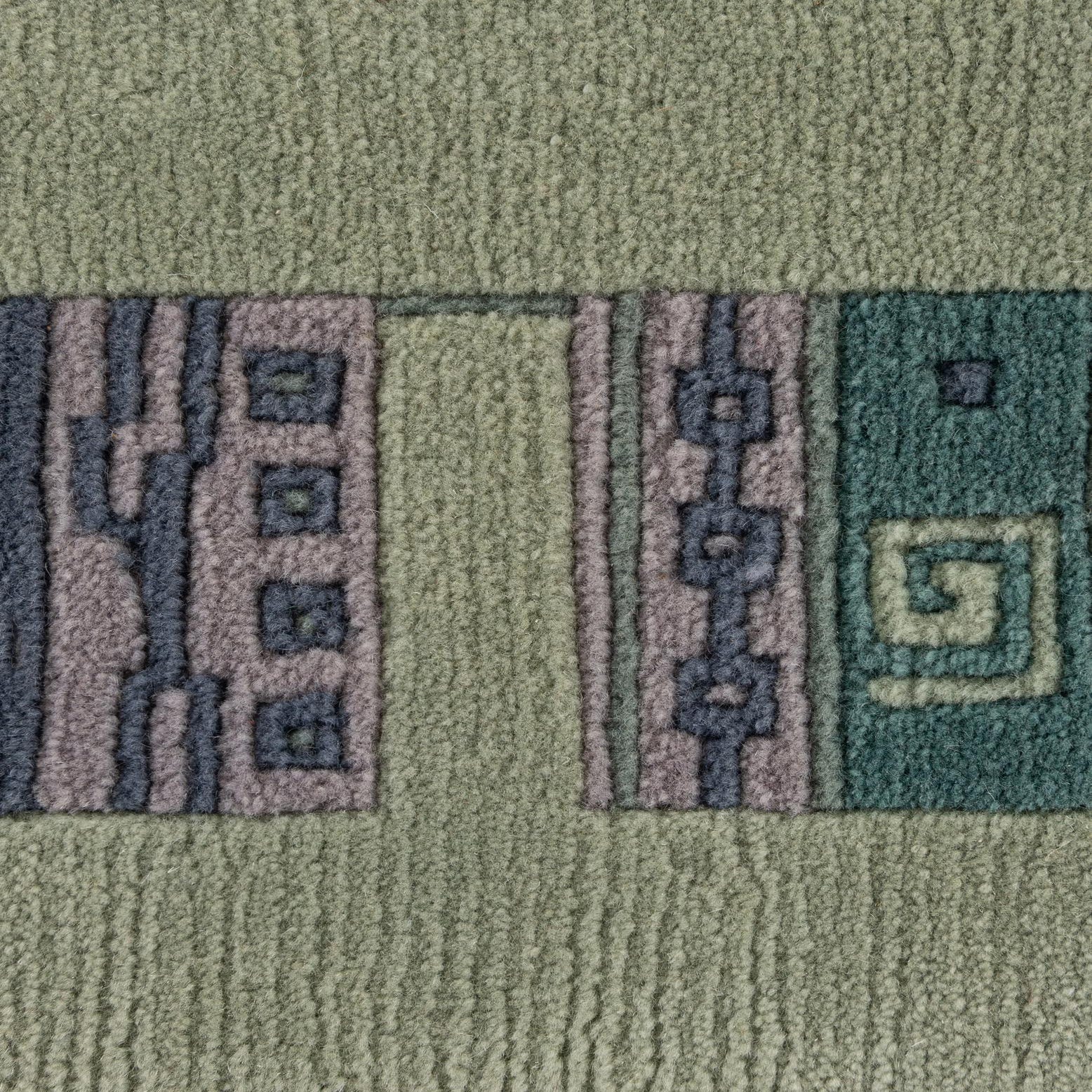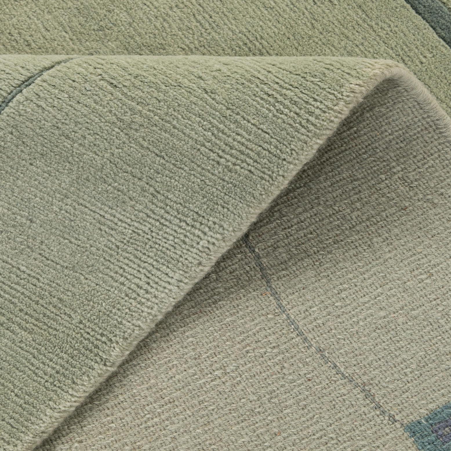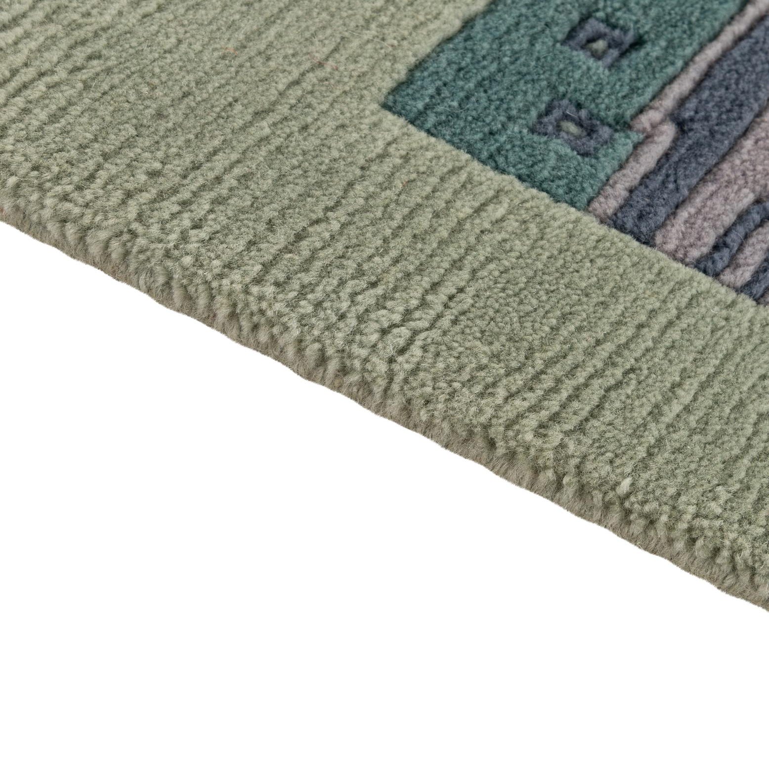 Primary color is Light Green. Colors in this rug include: Light Green, Blue, Purple, Gray.