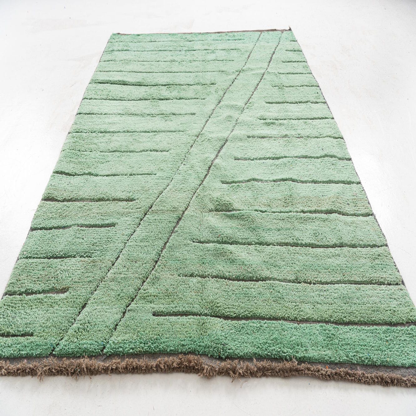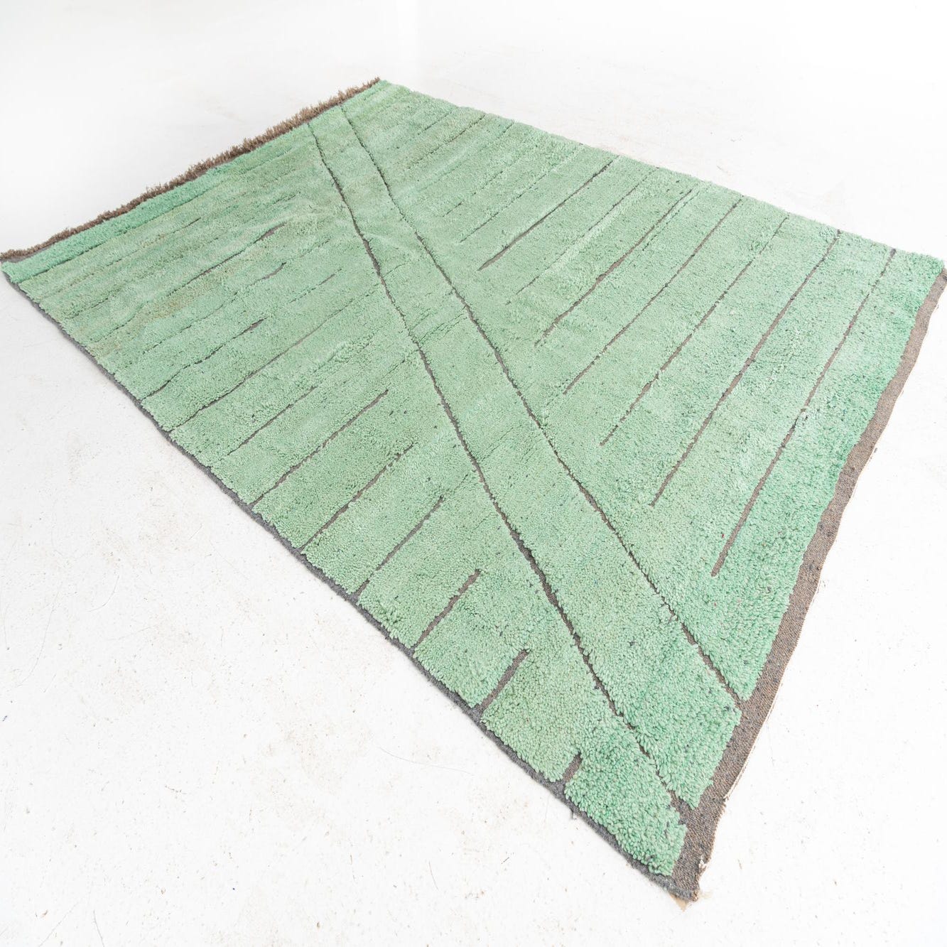 This Moroccan Collection rug is a noteworthy addition to any interior space, offering a touch of culture to your decor. Hand-knotted from 100% wool, the rug showcases a light green background complemented by gray accents, creating a serene and inviting atmosphere. The design features minimalist lines and subtle geometric patterns, imbuing the piece with a modern yet timeless appeal. The texture of the rug is characteristic of wool, providing a plush, dense pile that is comforting underfoot.