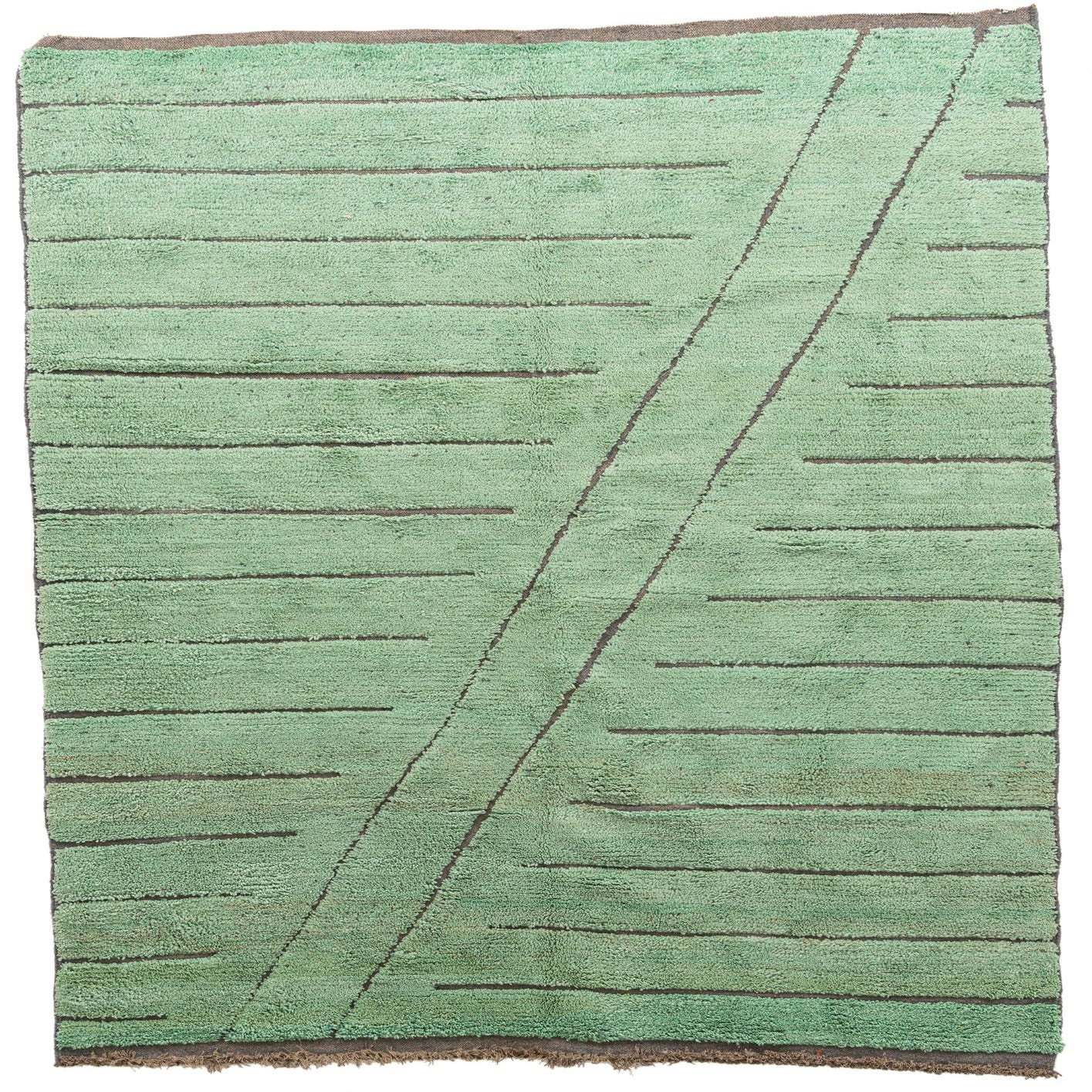 The calming colors and the simplistic pattern make this rug adaptable to both contemporary and traditional interiors. It would complement a room with natural wood elements, neutral tones, and organic textures. The light green hue works harmoniously with a palette of soft colors, or as a counterpoint to dark, rich furnishings.