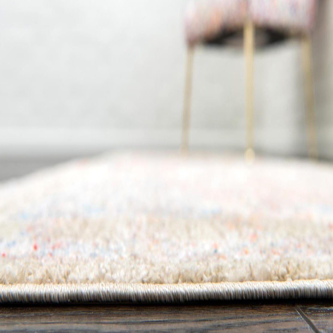 Machine-made from 100% polyester (space-dyed yarn), the surface has a soft, slightly plush hand and a subtle, variegated sheen that brings the colors to life. The pile sits low to medium, offering a cushioned feel underfoot and a textured appearance that reads well layered over wood or neutral flooring. Use this runner to define a foyer or hallway, anchor a narrow kitchen or galley, or add a splash of color alongside a bed; it pairs nicely with light neutrals, warm woods, cottage or transitional furnishings, and eclectic accents that echo the rug’s brighter hues.