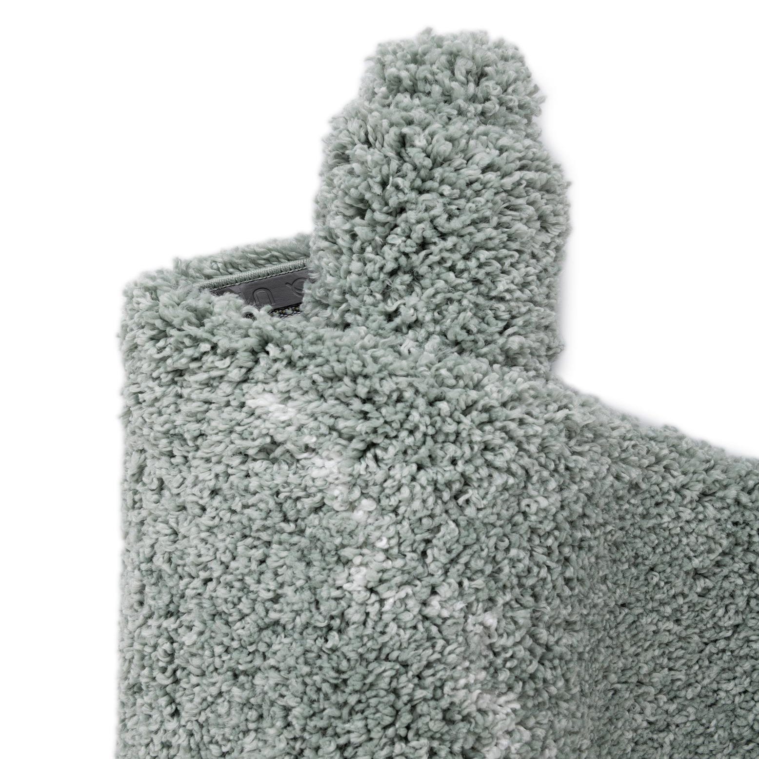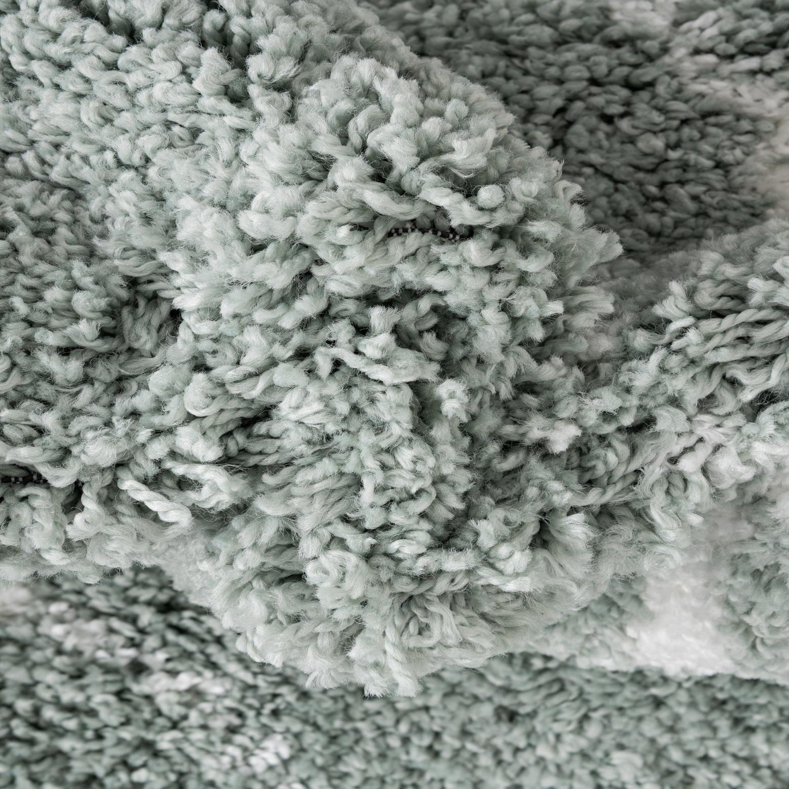 The light green hue of this rug serves as a soothing base, while the gentle ivory accents punctuate the surface with an organic, geometric arrangement. The high pile of the shag texture not only contributes to the visual depth but also enhances the tactile experience.