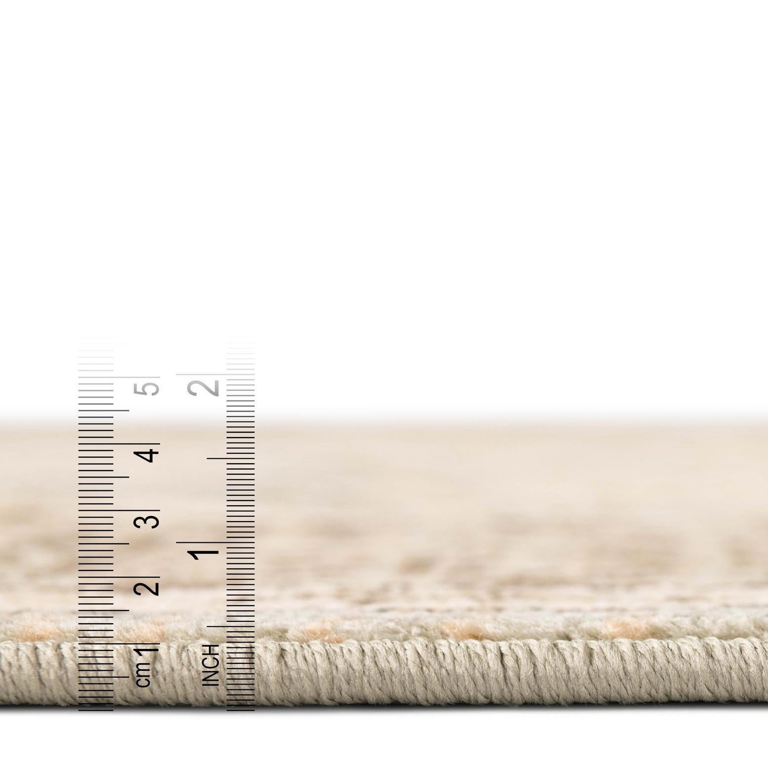 This rug works well as an anchor in a formal living room or beneath a dining table in a larger space, where the medallion and border can be fully appreciated. It also pairs nicely with warm wood furnishings and neutral upholstery—think cream linen sofas, light oak dining tables, or leather accent chairs—adding soft color without overwhelming a room. In a more traditional study or a transitional bedroom, the patterned field provides visual interest while the subdued tones keep the overall scheme calm and cohesive.
