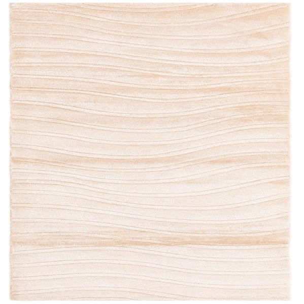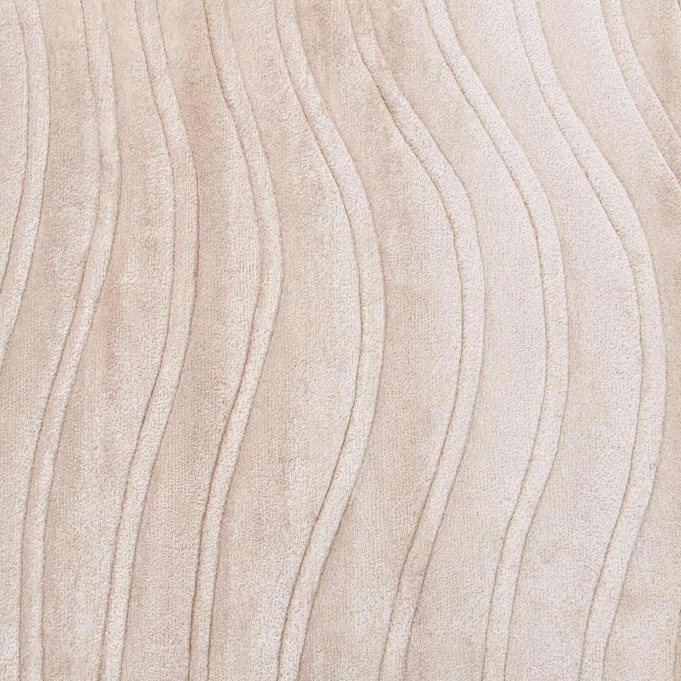 A soft, hand-knotted wool runner with a light peach ground and light brown wave motif, this rug pairs a subtle, tone-on-tone pattern with a sculpted pile that invites touch. The carved waves create gentle ridges and valleys across a plush wool surface, so the texture reads both visually and underfoot — soft to step on with a low-relief design that adds sculptural interest without overwhelming a space. The hand-knotted construction in 100% wool gives the pile a natural luster and a refined, tactile feel.