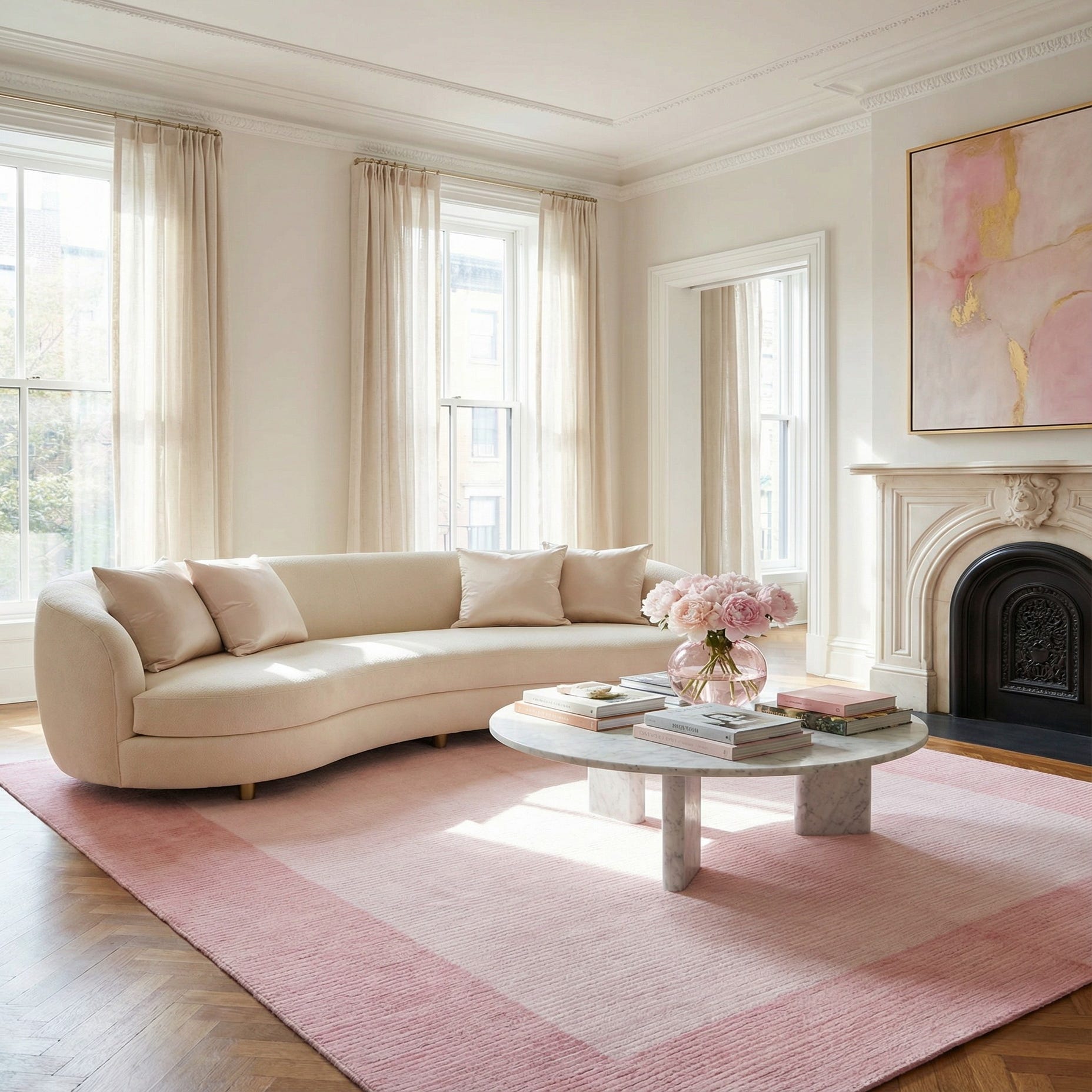 Primary color is Light Pink. Colors in this rug include: Light Pink, Pink.